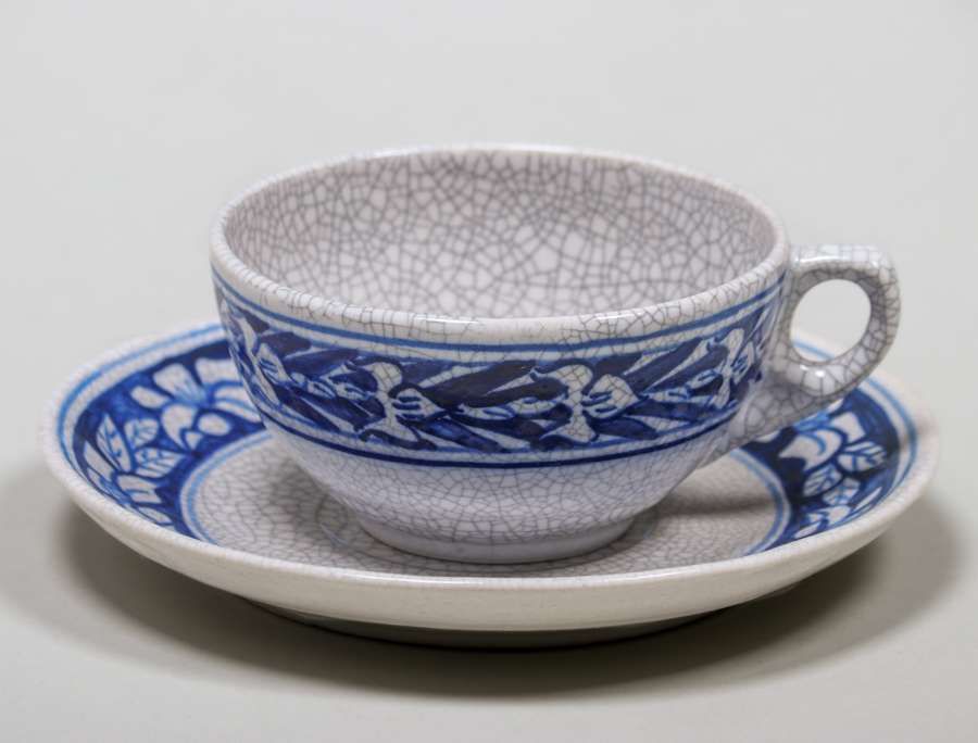 - Dedham Pottery Floral Tea Cup & Saucer c1910s