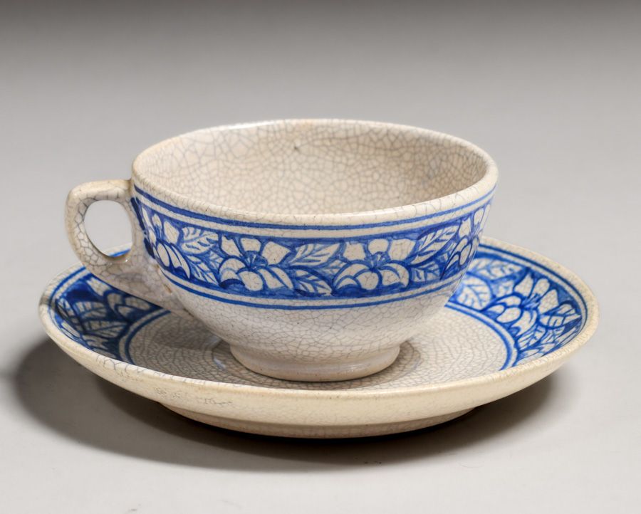 - Dedham Pottery Floral Tea Cup & Saucer c1920s
