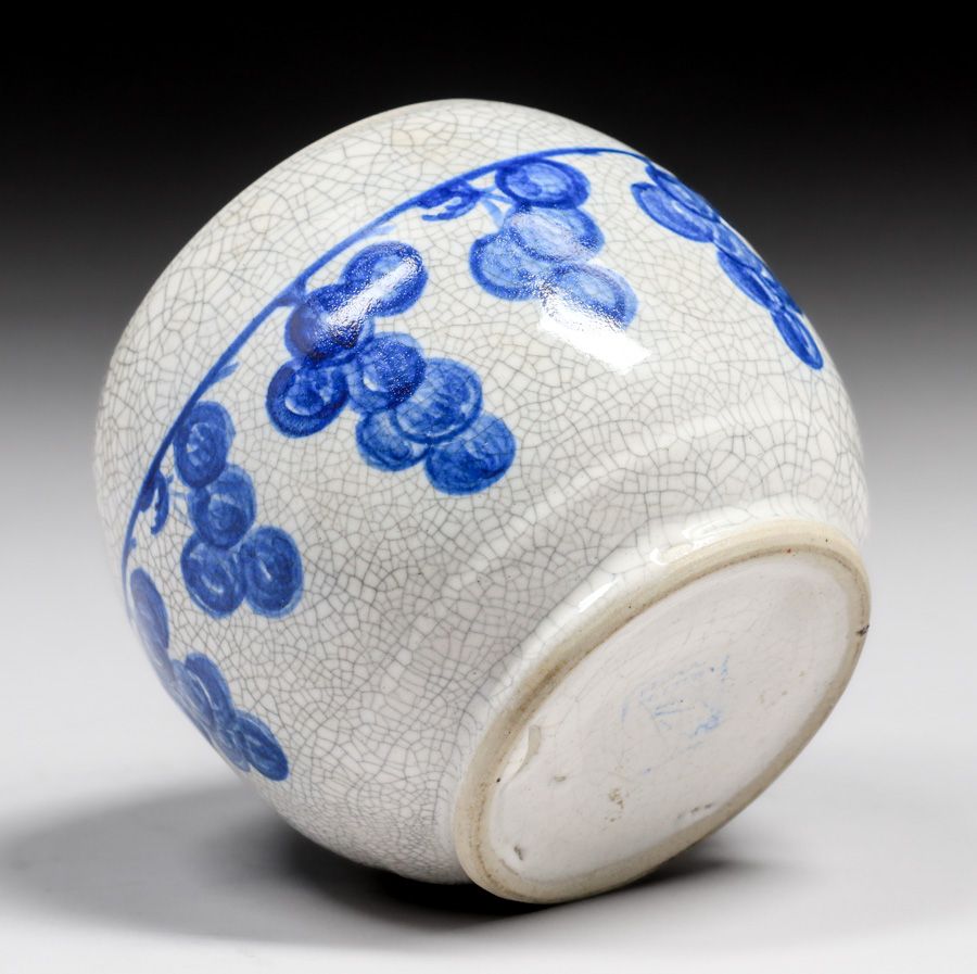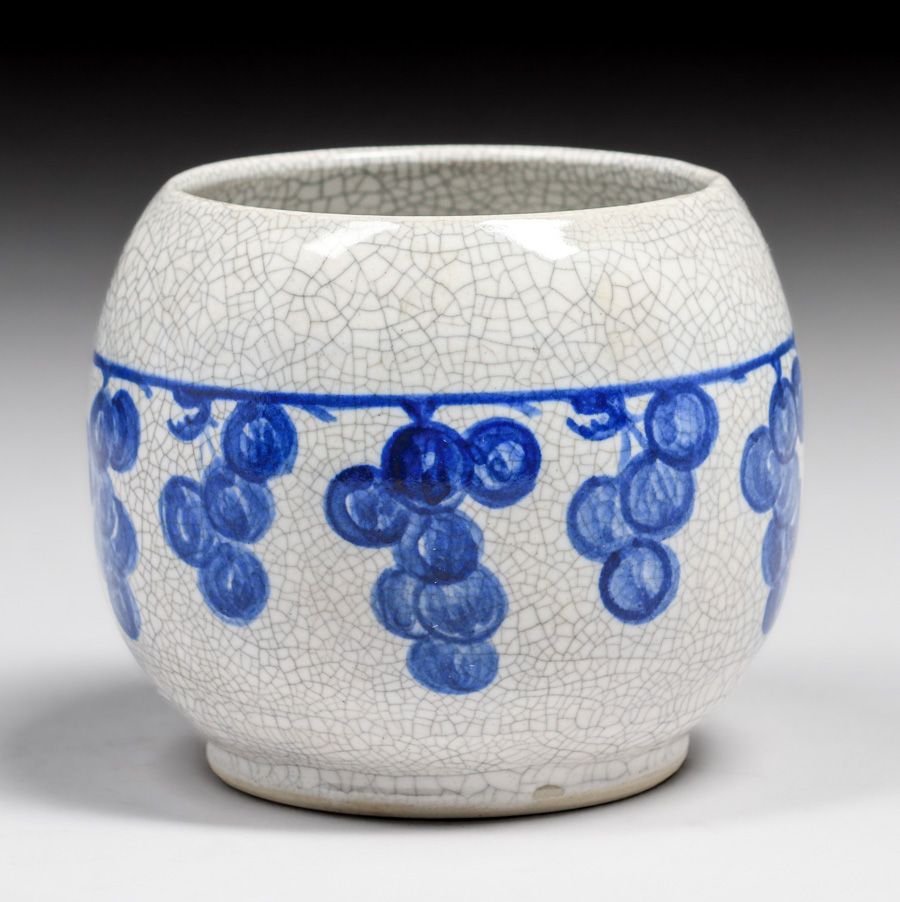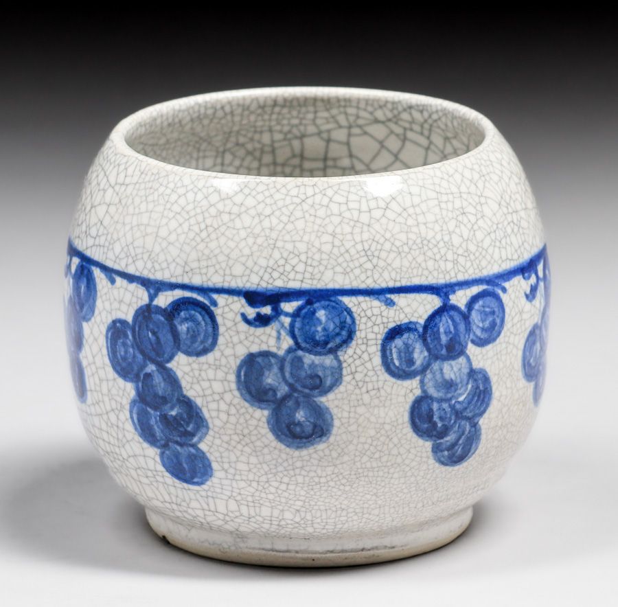 Dedham Pottery Grapevine Vase c1920s. Signed. Perfect condition. 3.75”h x 4.5”d $650
