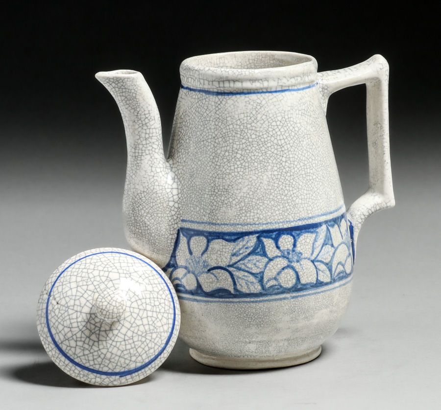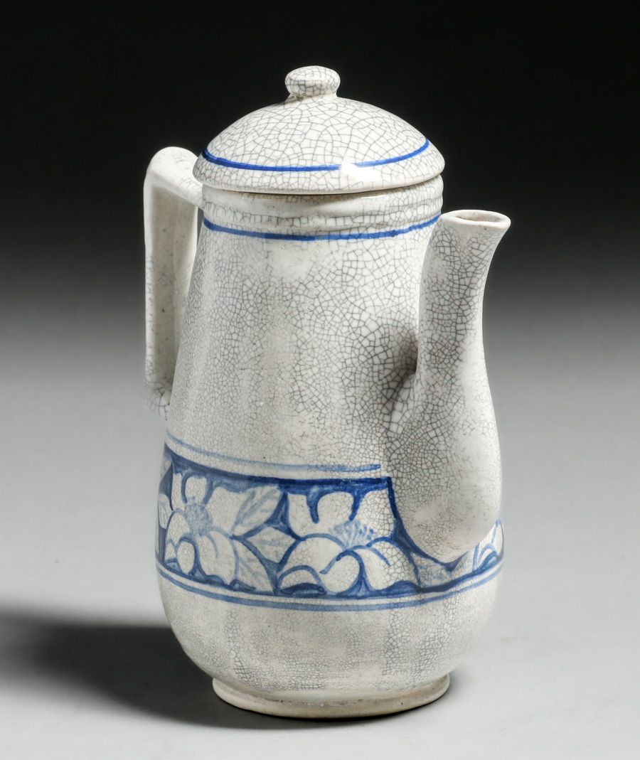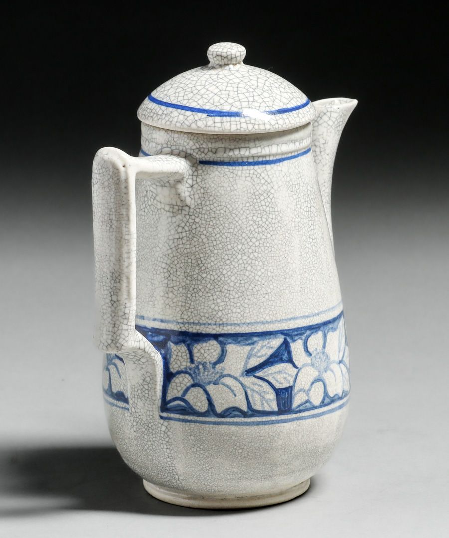 Dedham Pottery Magnolia Pitcher c1920s. Signed. Invisible professional restoration to small rim chip, otherwise perfect condition. 8.5"h x 6.75"w SOLD