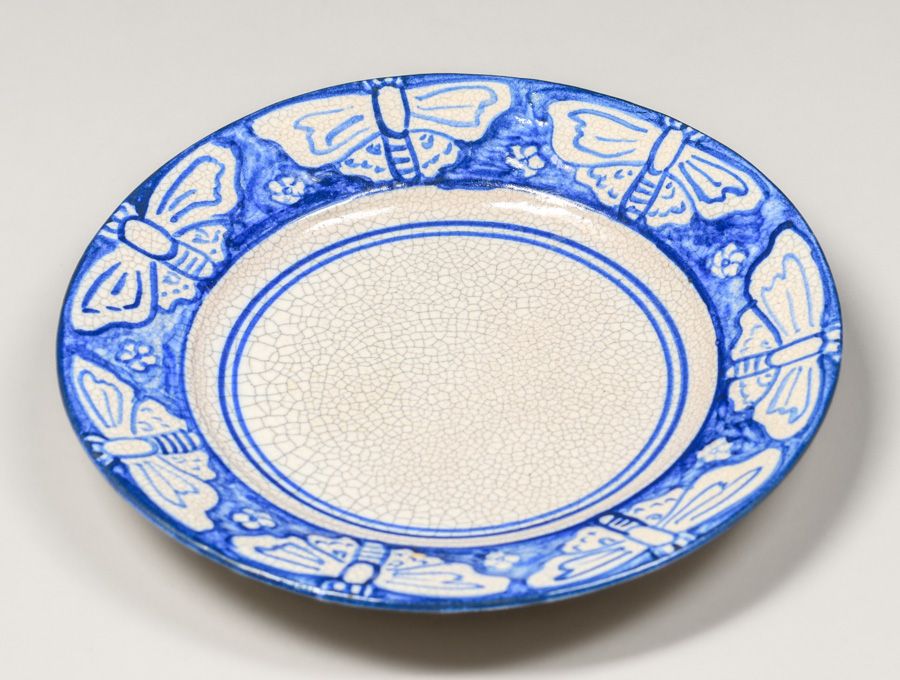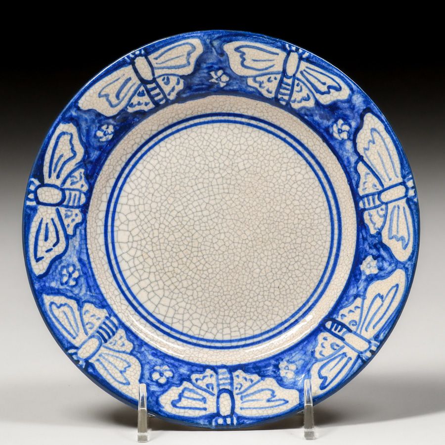 Dedham Pottery Moths Plate c1920s. Signed with Dedham stamp and artist signature. Perfect condition. 6.25"d SOLD
