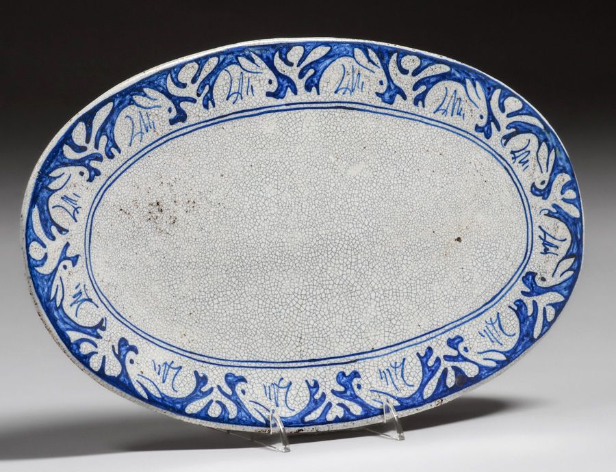 - Dedham Pottery Oval-Shaped Rabbit Platter c1910s