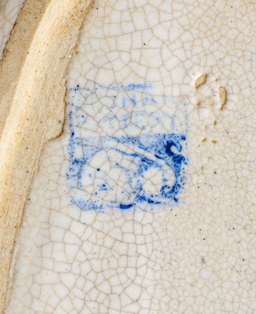 Dedham Pottery Oval-Shaped Rabbit Platter c1910s. Signed. Some excess glaze bubble on edge and dark spots throughout, otherwise perfect condition. 13" x 8" SOLD