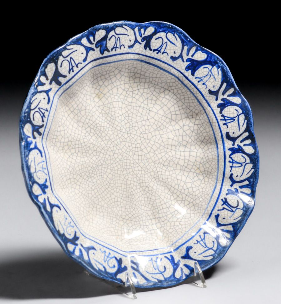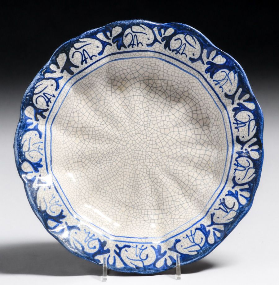 Dedham Pottery Scalloped Edge Rabbit Bowl c1920s. Signed. Perfect condition. 9"d x 2"h SOLD