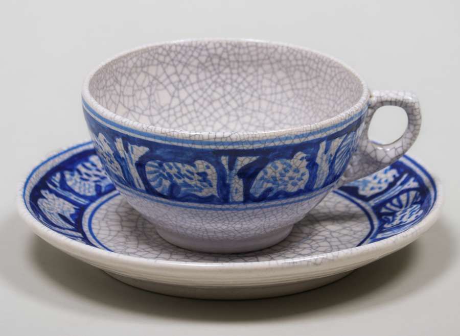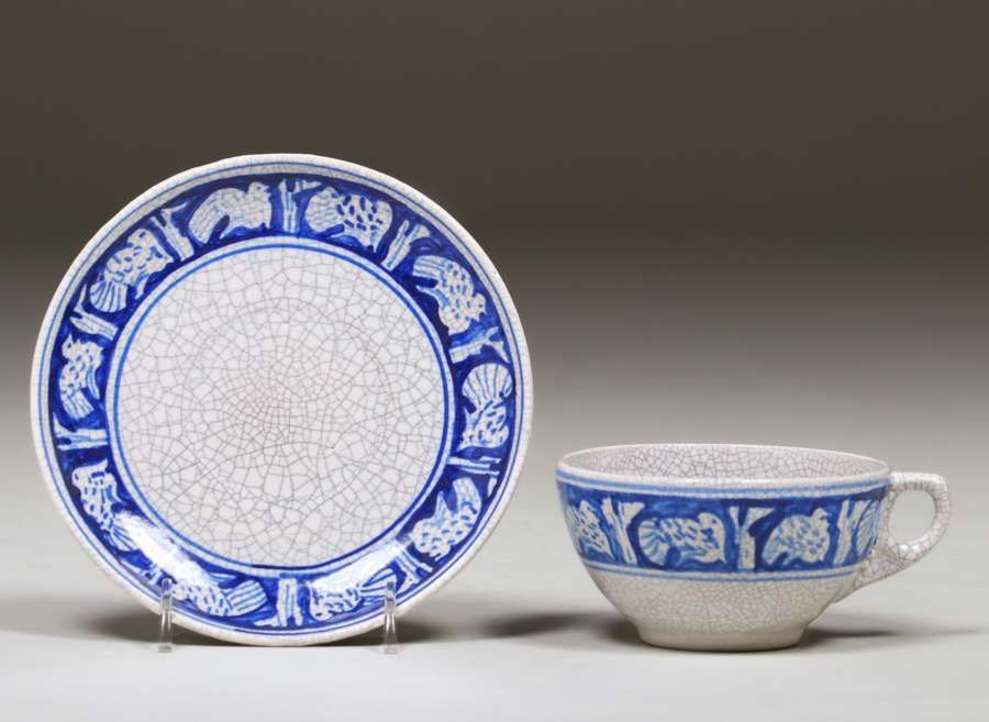 - Dedham Pottery Turkey Tea Cup & Saucer c1910s
