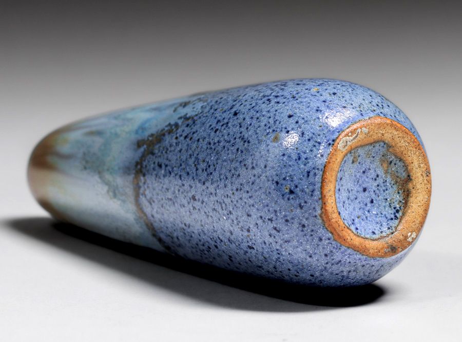 Early Fulper Vasekraft “First Fifteen” #11 Slender Ovoid Vase c1910. Glazed over signature. Perfect condition. 6″h x 2 1/8”d SOLD