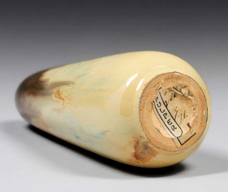 Early Fulper Vasekraft “First Fifteen” #11 Slender Ovoid Vase c1910. Signed. Perfect condition. 5.5″h x 2 1/8”d SOLD