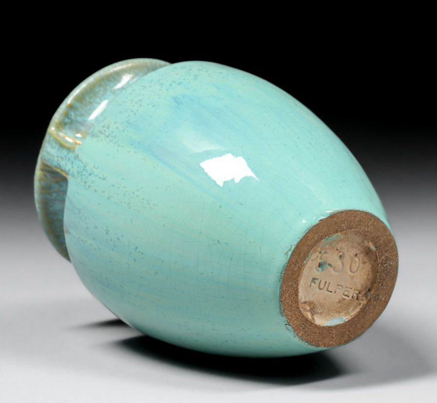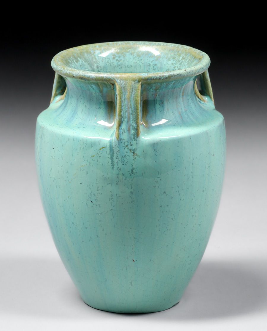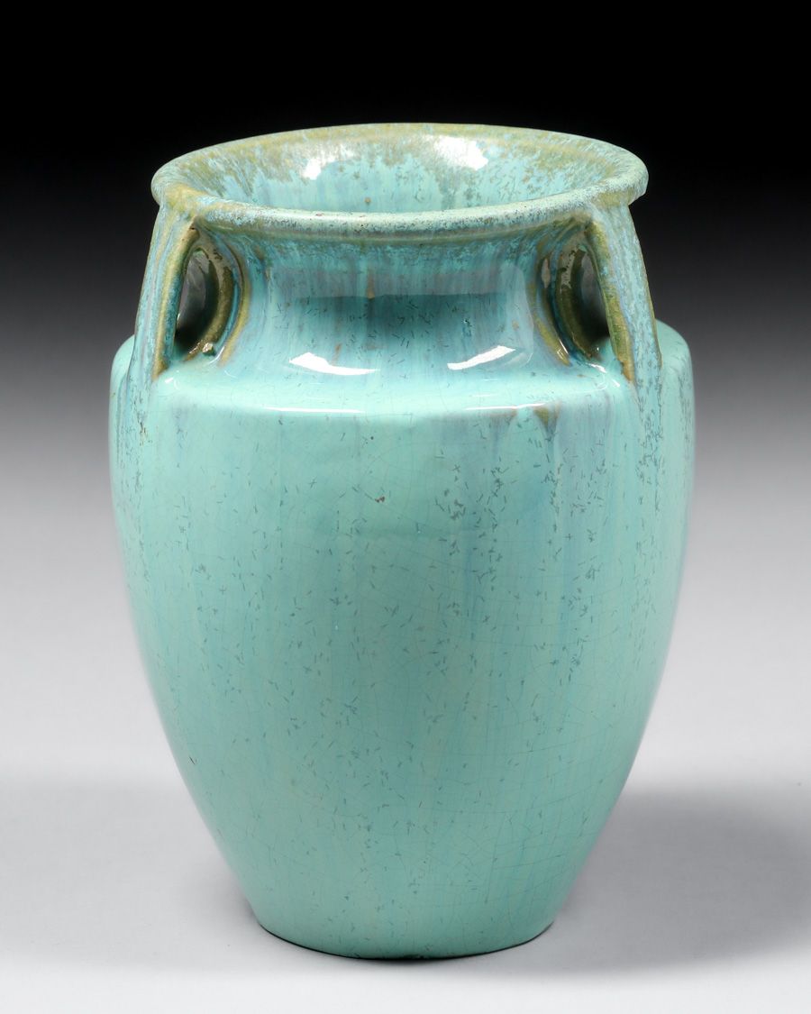 - Fulper Pottery #530 Three-Handled Light Green Vase c1920