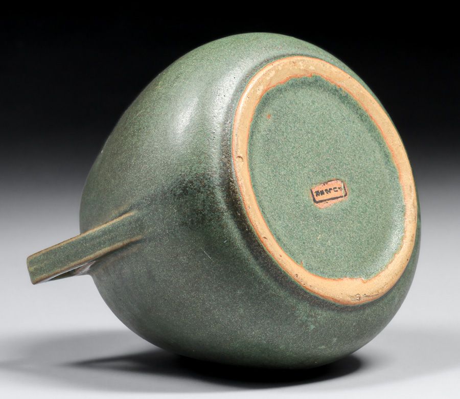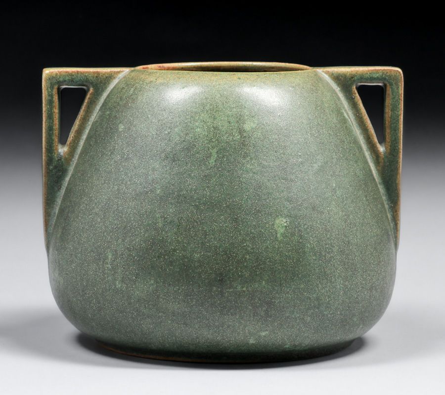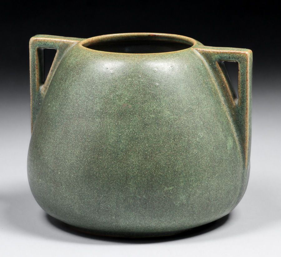 Fulper Pottery "Antique Verte" Matte Green Two-Handled Vase c1910. Signed. Perfect condition. 8.5"w x 6.5"h SOLD
