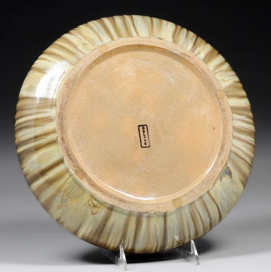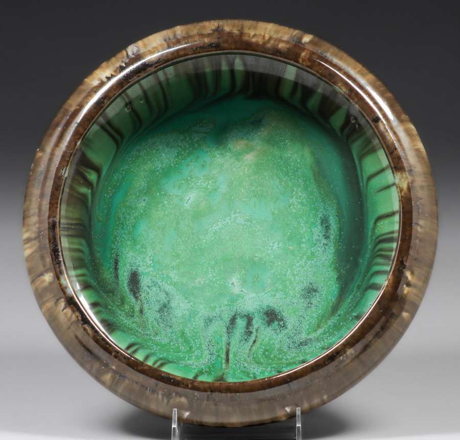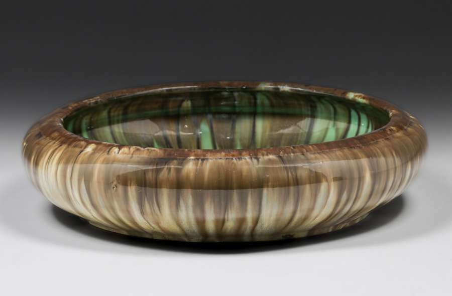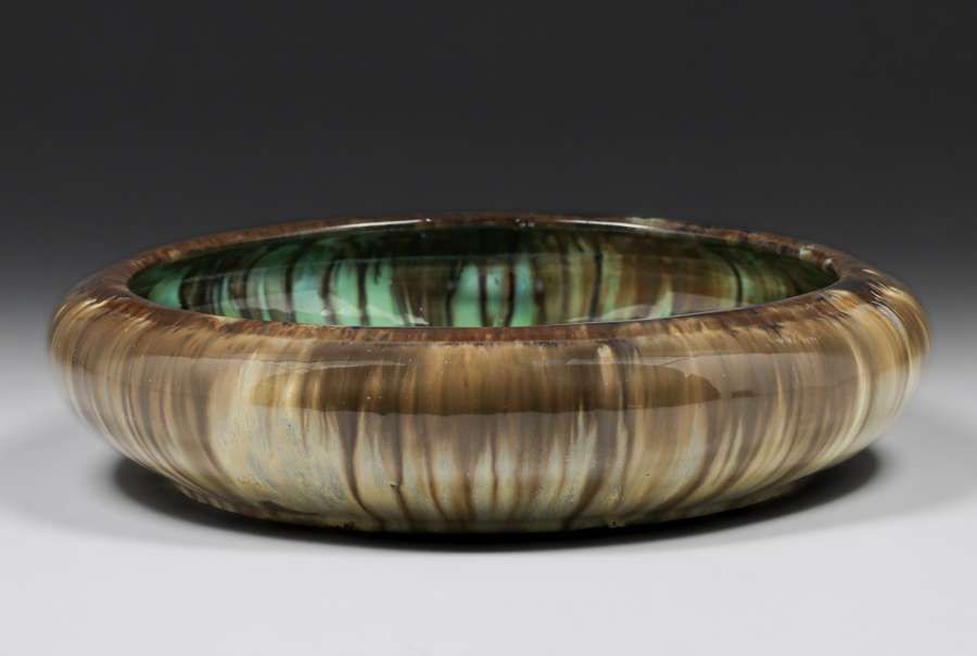 - Fulper Pottery Black Drip Centerpiece Bowl c1910s
