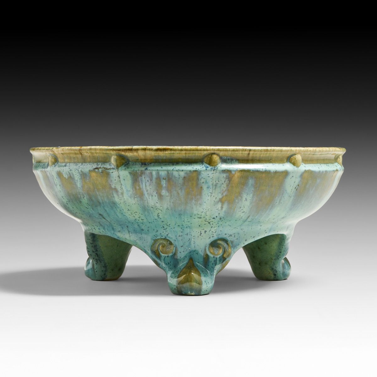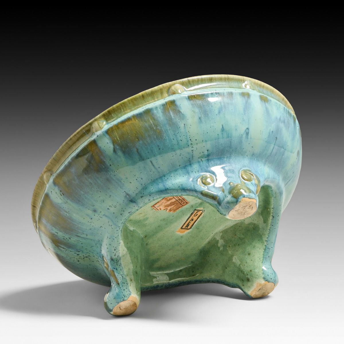 - Fulper Pottery Blue Crystalline Three-Footed Fruit Bowl c1910s