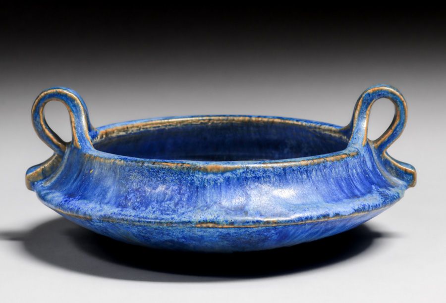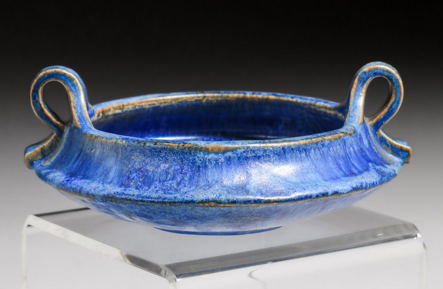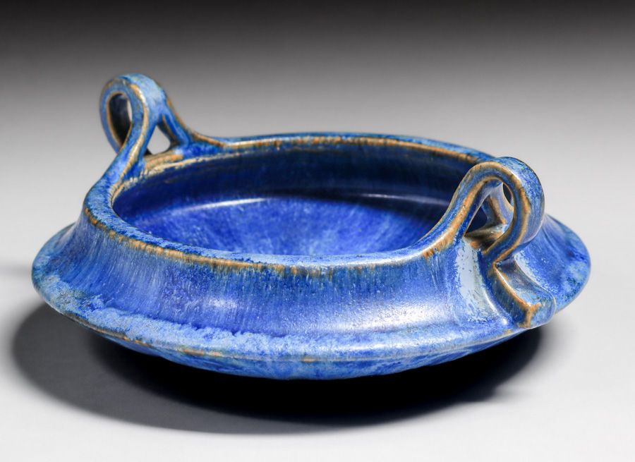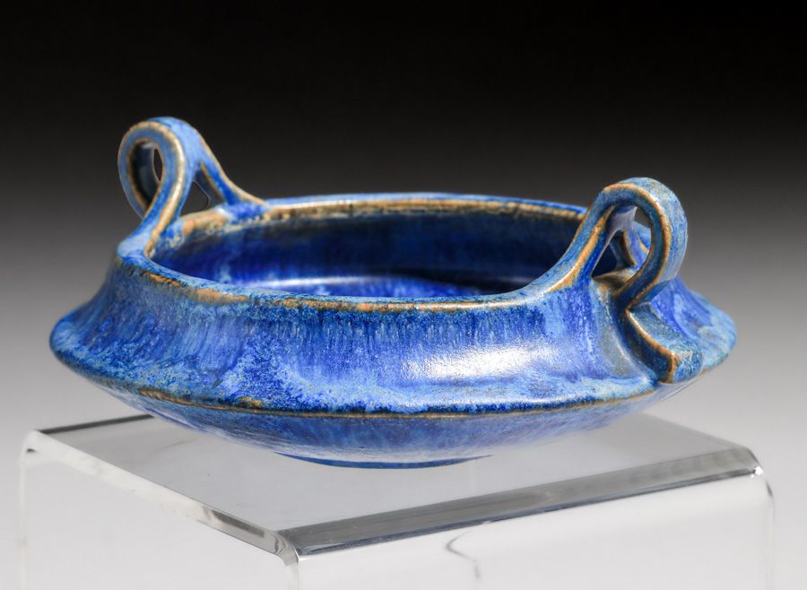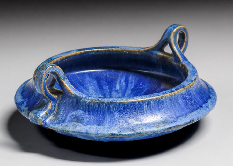 - Fulper Pottery Blue Crystalline Two-Handled Bowl c1917-1920