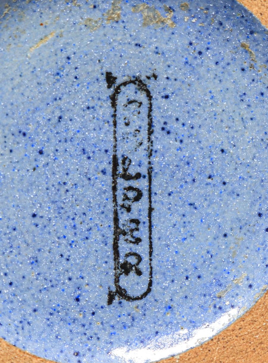 Fulper Pottery Blue Crystalline Two-Handled Bowl c1917-1920. Signed. Perfect condition. 7.75"d x 3"h SOLD