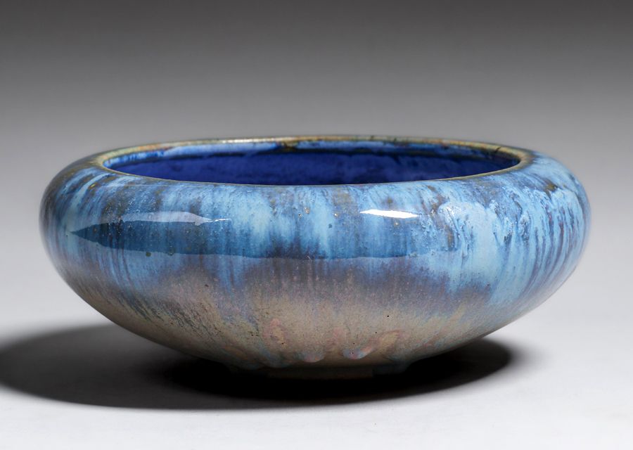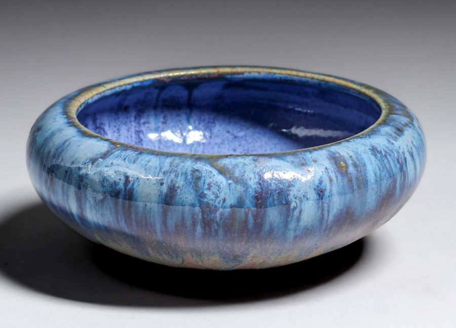 Fulper Pottery Blue Drip Bowl c1910s. Signed. Perfect condition. 7.5d x 3h inches $450