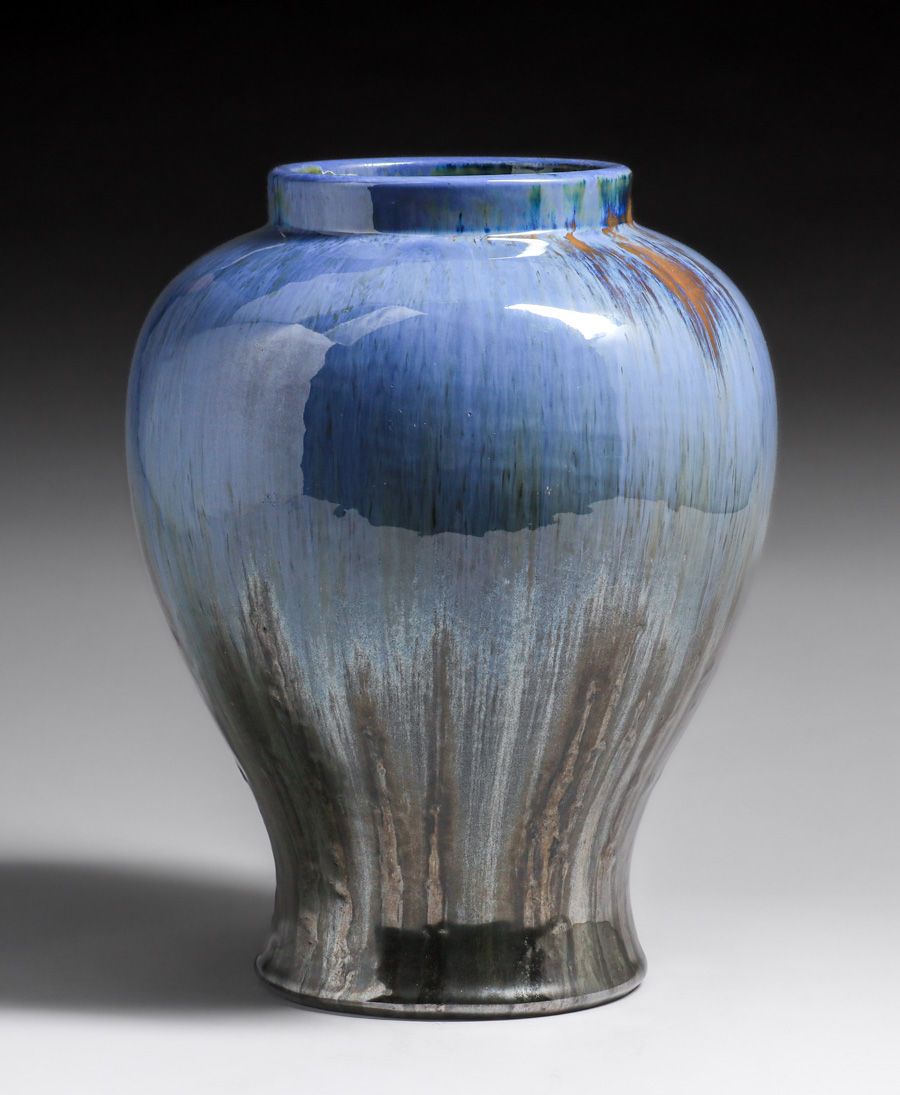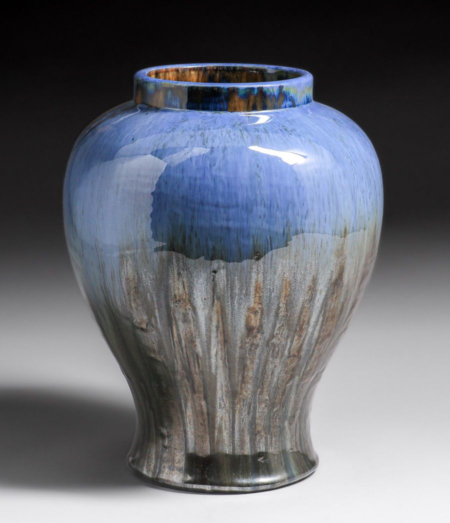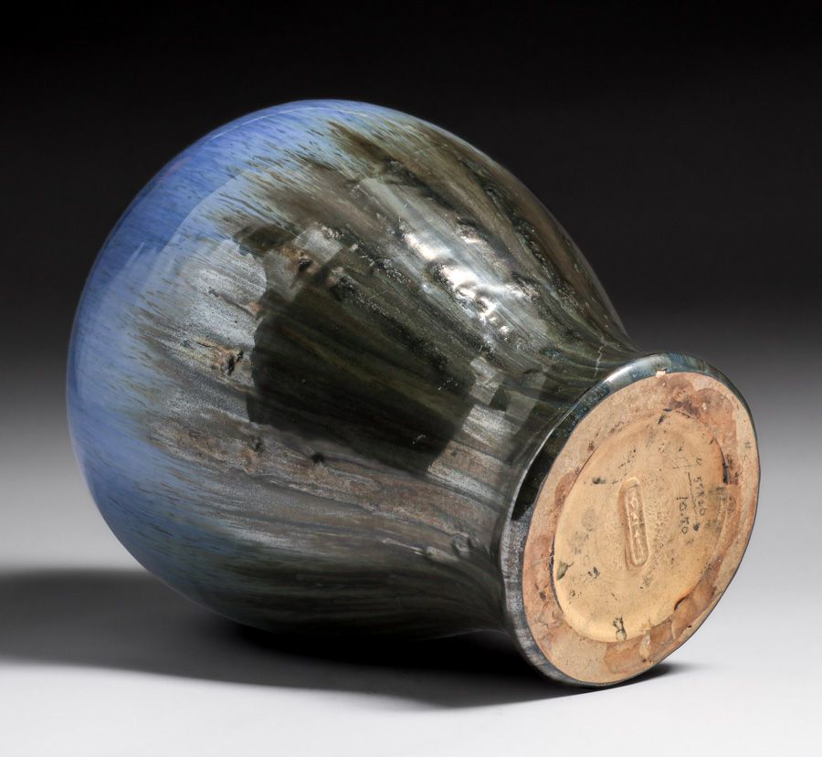 Fulper Pottery Blue & Mirror Black Flambe Vase c1910s. Signed. Perfect condition. 11.5"h x 8.5"d $1800