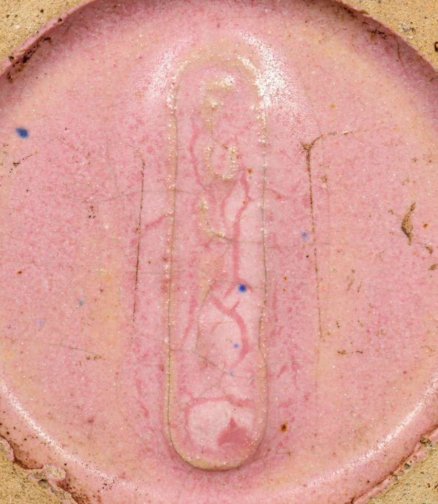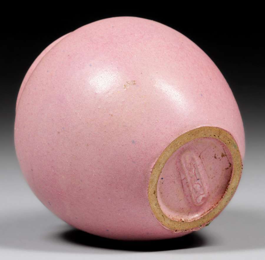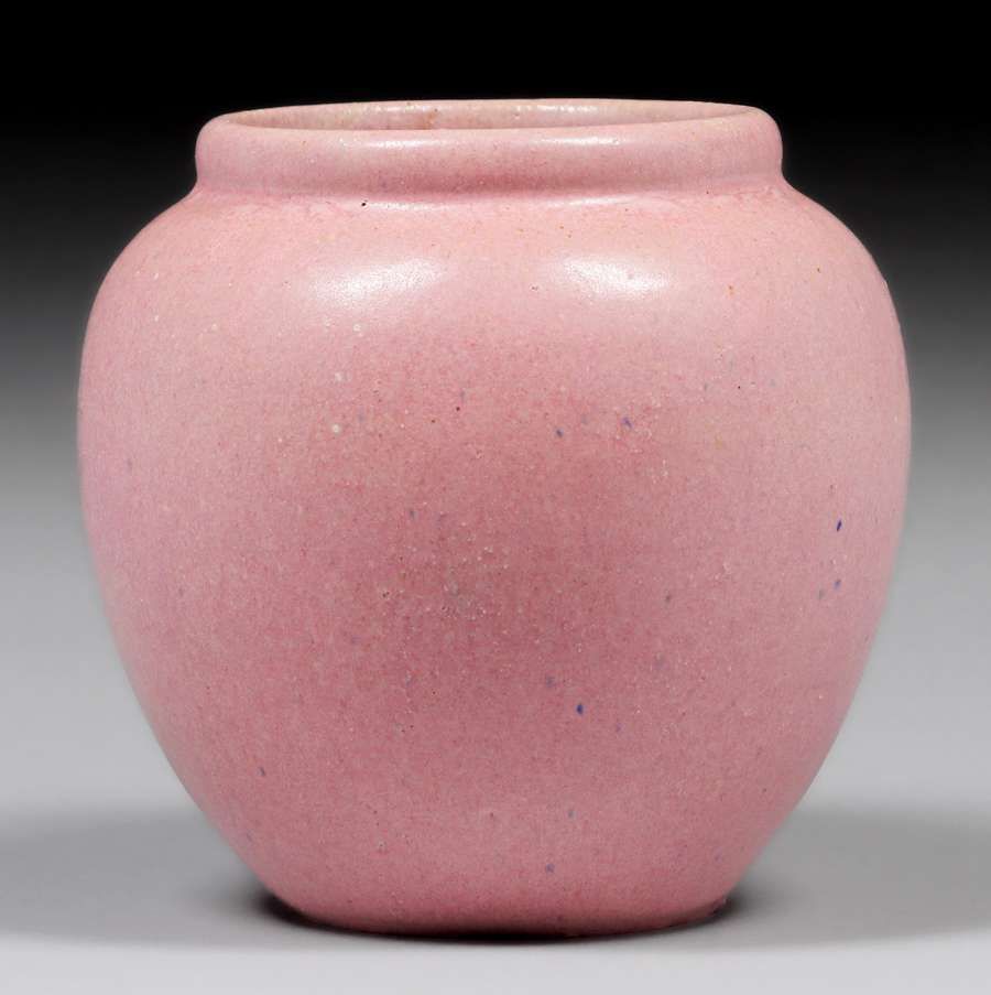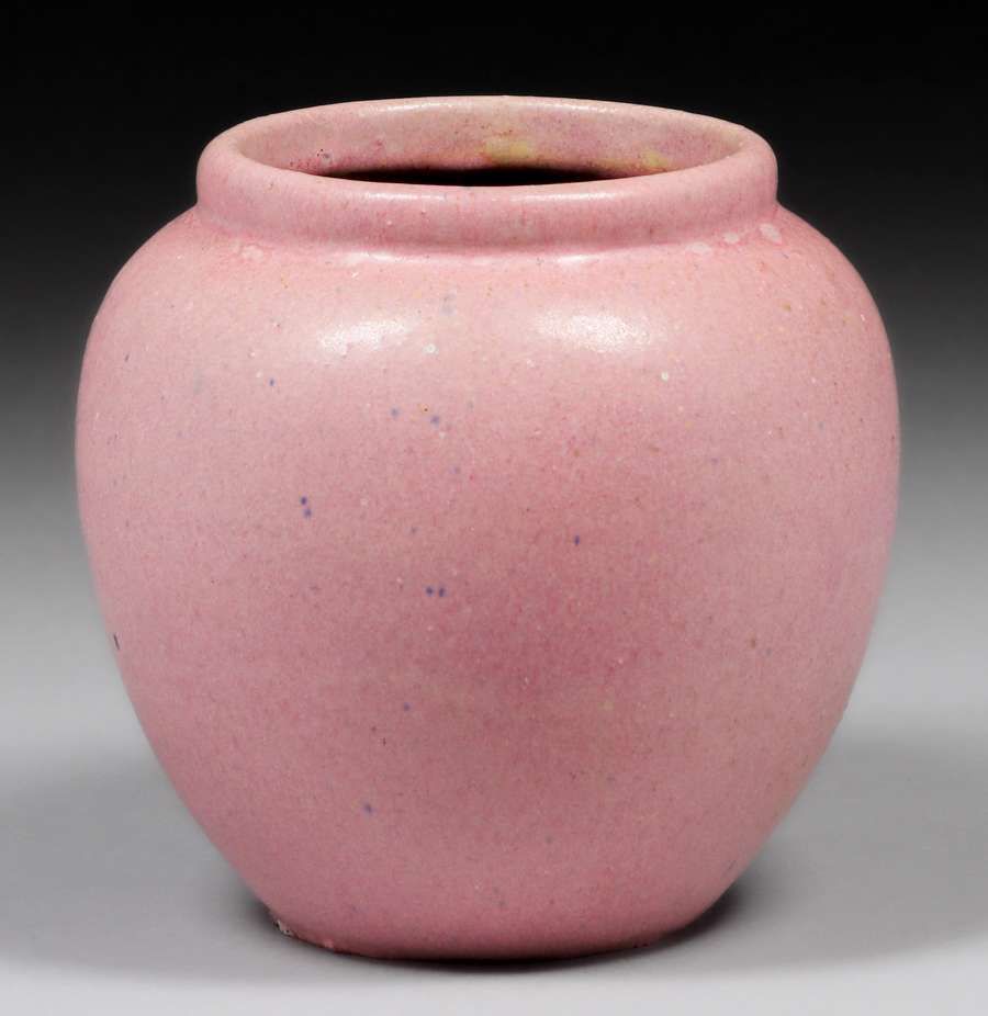 Fulper Pottery Blue Speckled Matte Pink Vase c1910s. Signed. Perfect condition. 5.5"d x 5"h SOLD