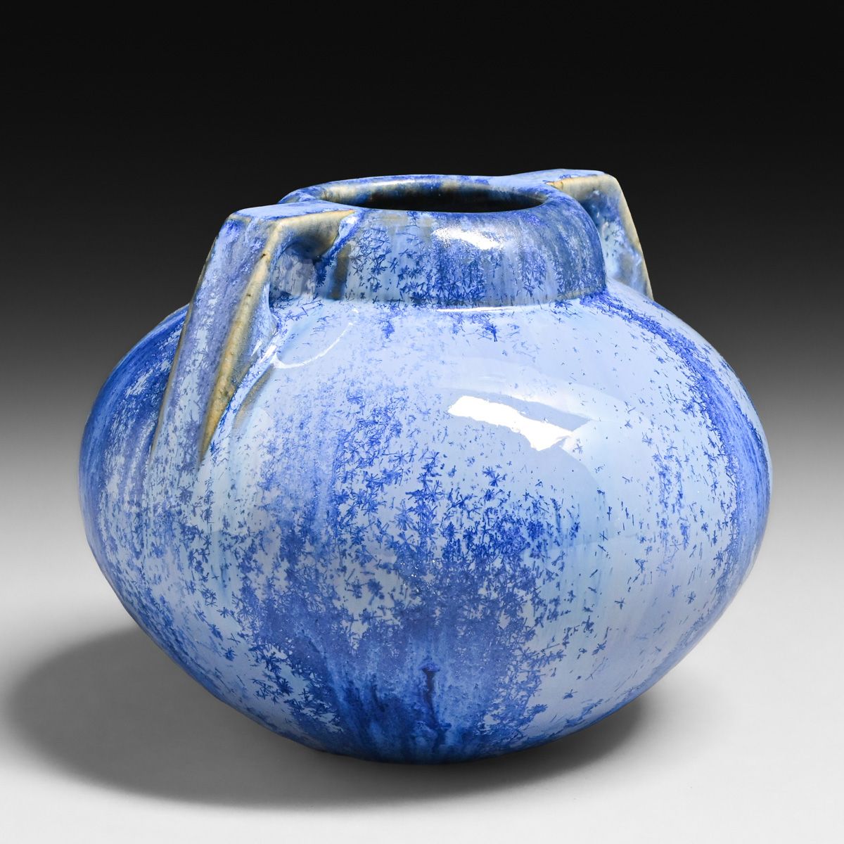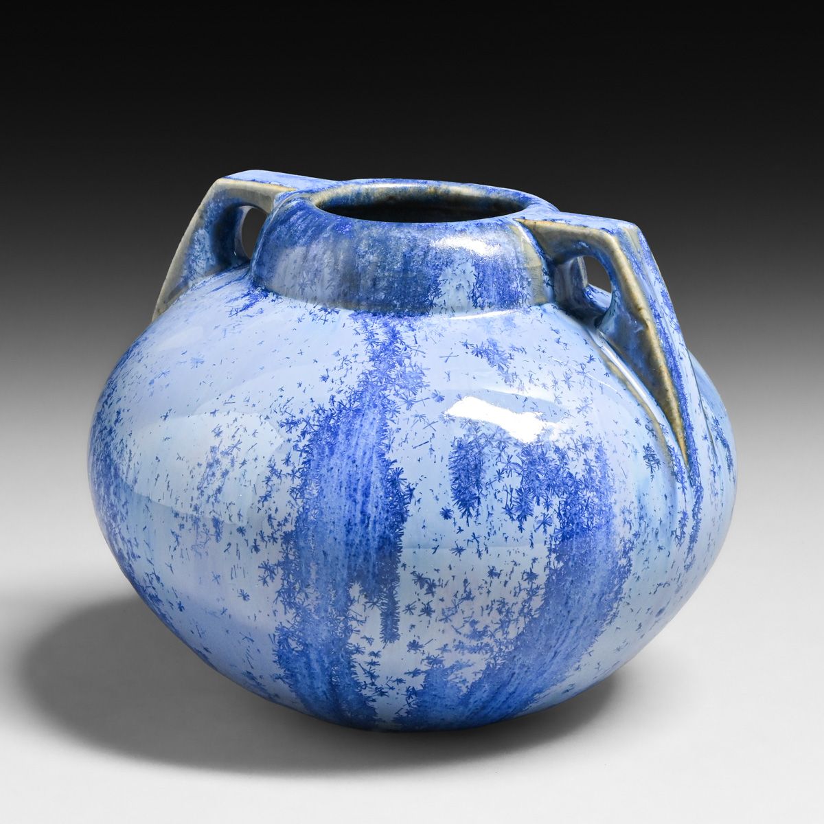 - Fulper Pottery Bulbous Blue Crystalline Two-Handled Vase c1917-1920