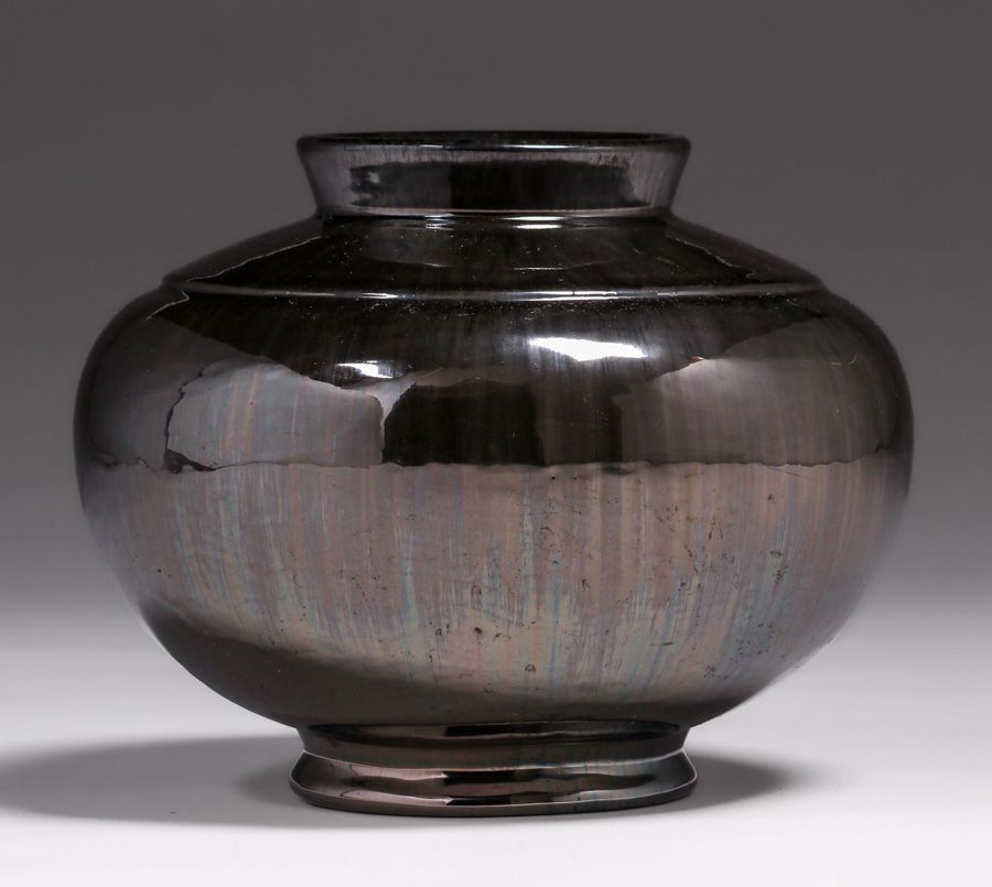 - Fulper Pottery Bulbous Mirror Black Vase c1910s