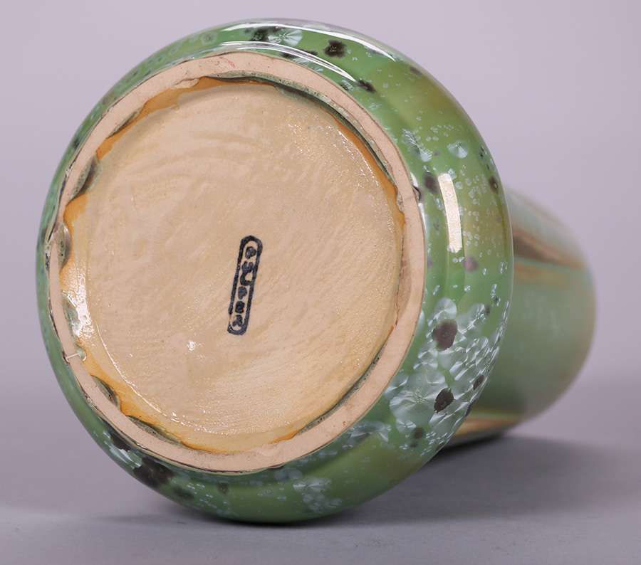 Fulper buttress vase with beautiful leopardskin glaze. Perfect condition. 8.25″h x 6"d SOLD