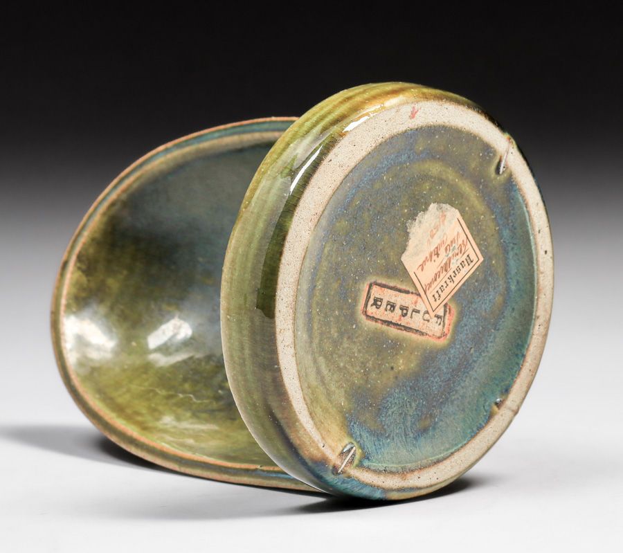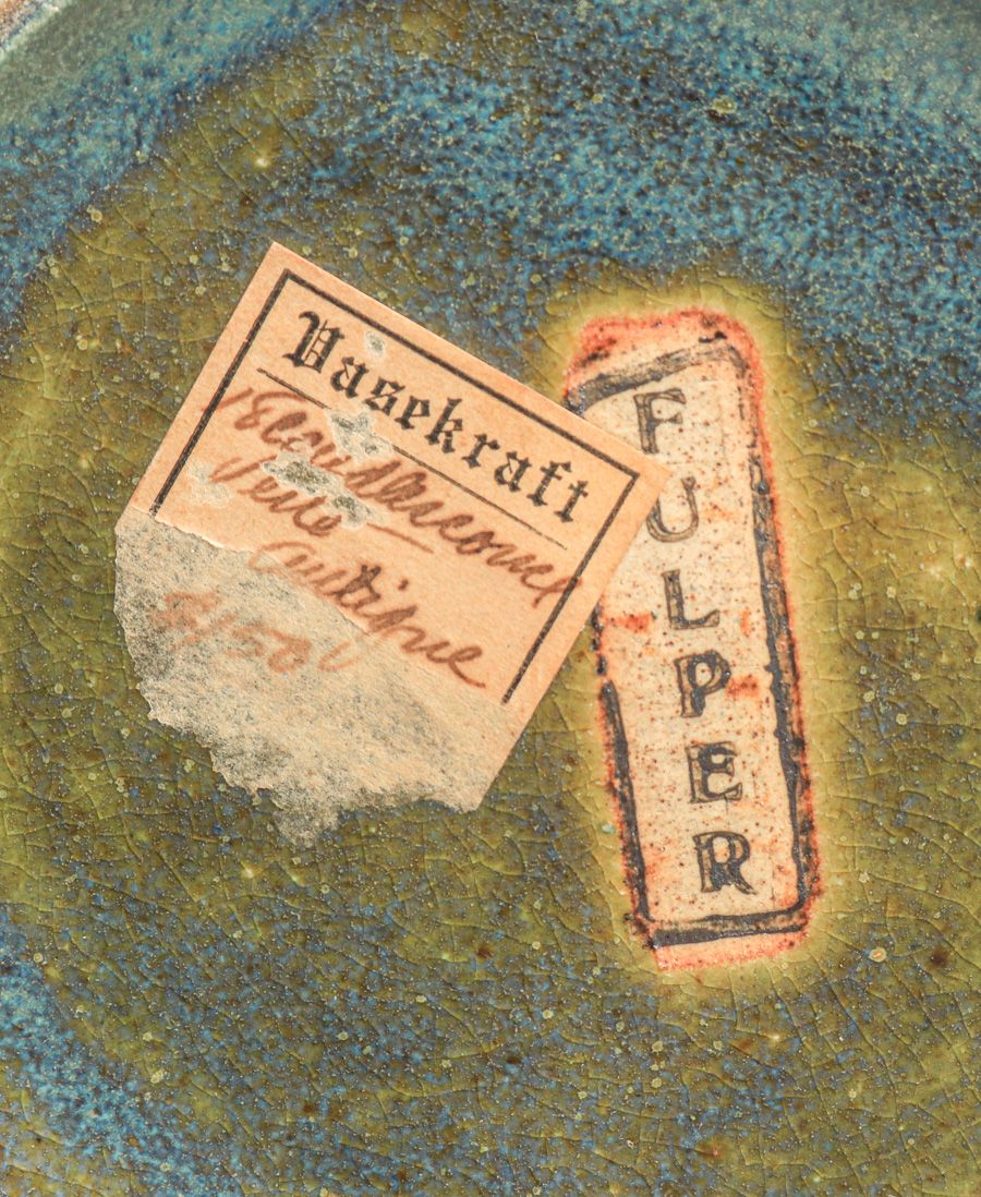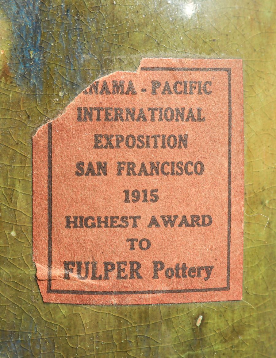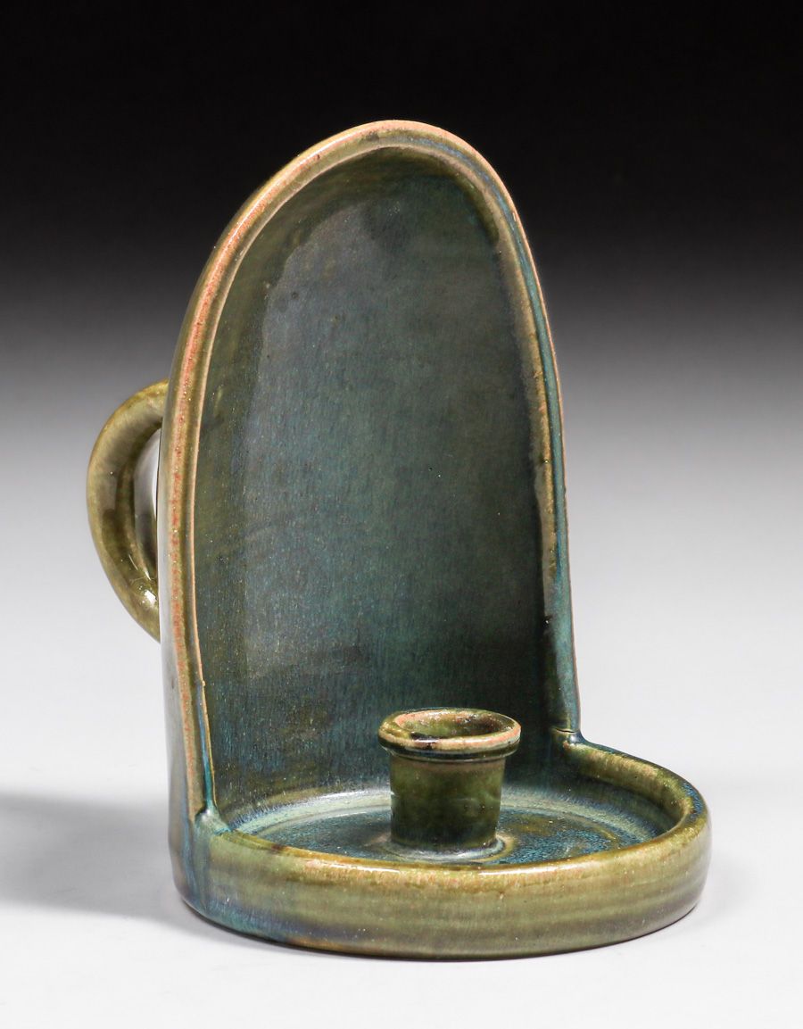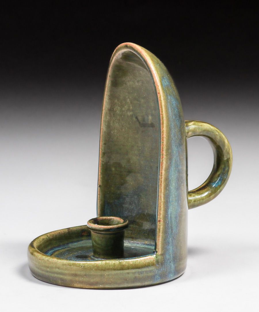 Fulper Pottery Chamber Stick c1915-1916. Signed. Panama Pacific International Exposition Label. Perfect condition. 7"h x 6.5"w x 4.75"d $450