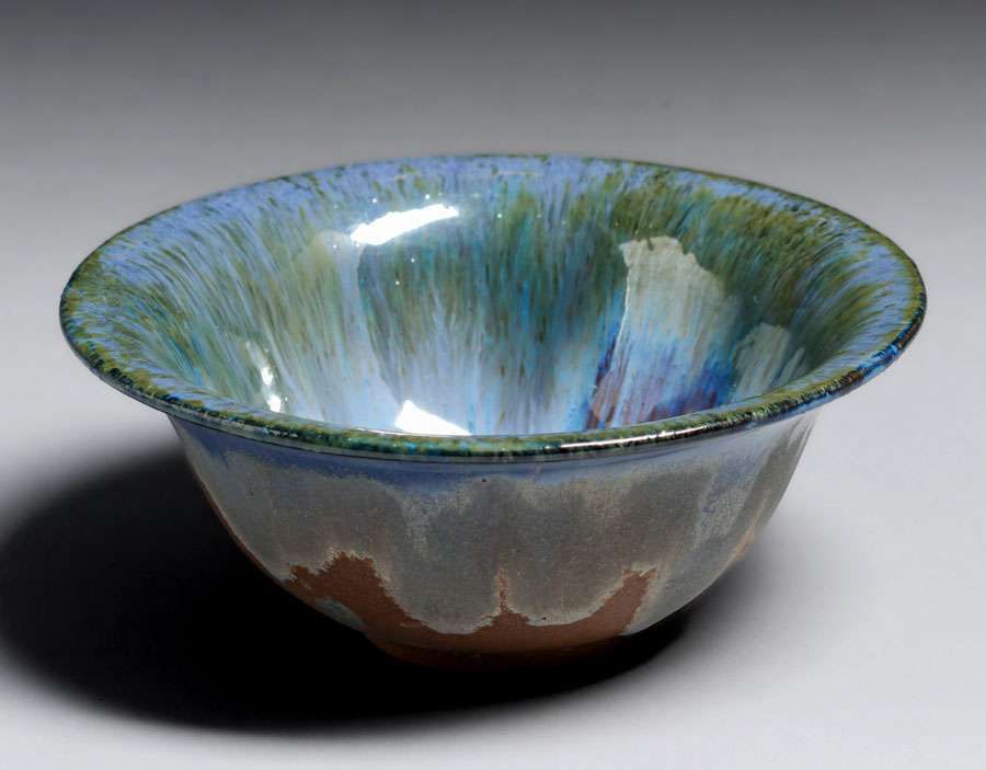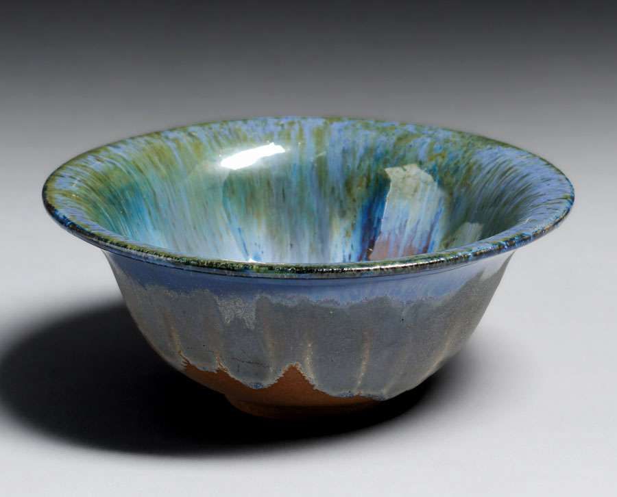 - Fulper Pottery Chinese Blue Flambe Flared Bowl c1910