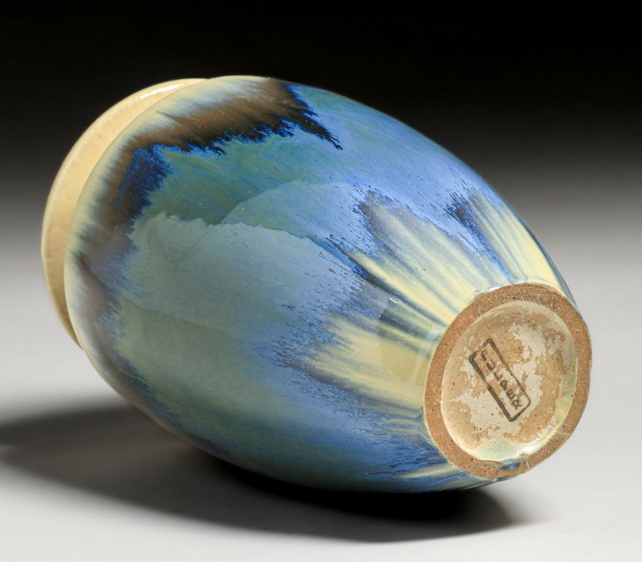 - Fulper Pottery Chinese Blue & Ivory Flambe Vase c1910s