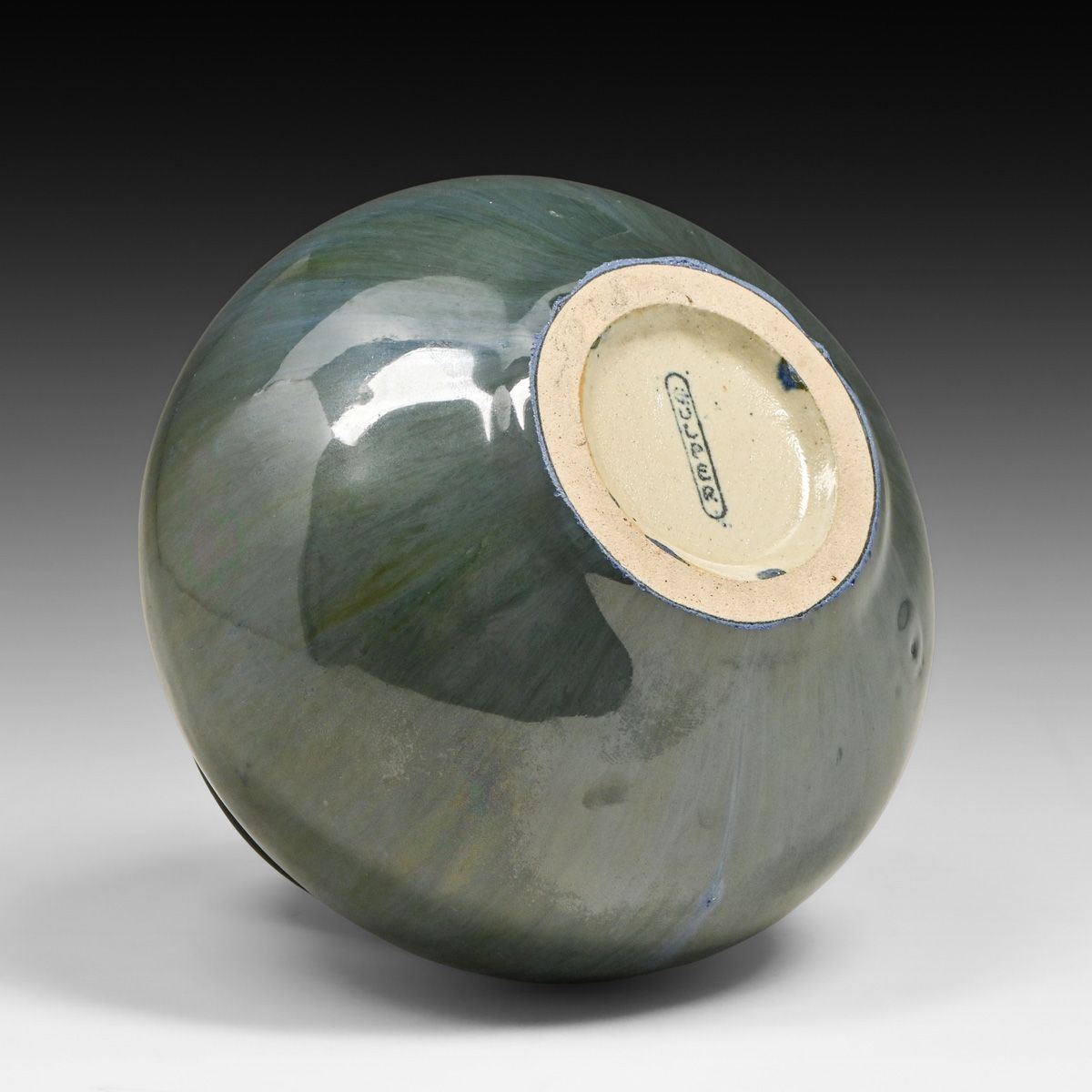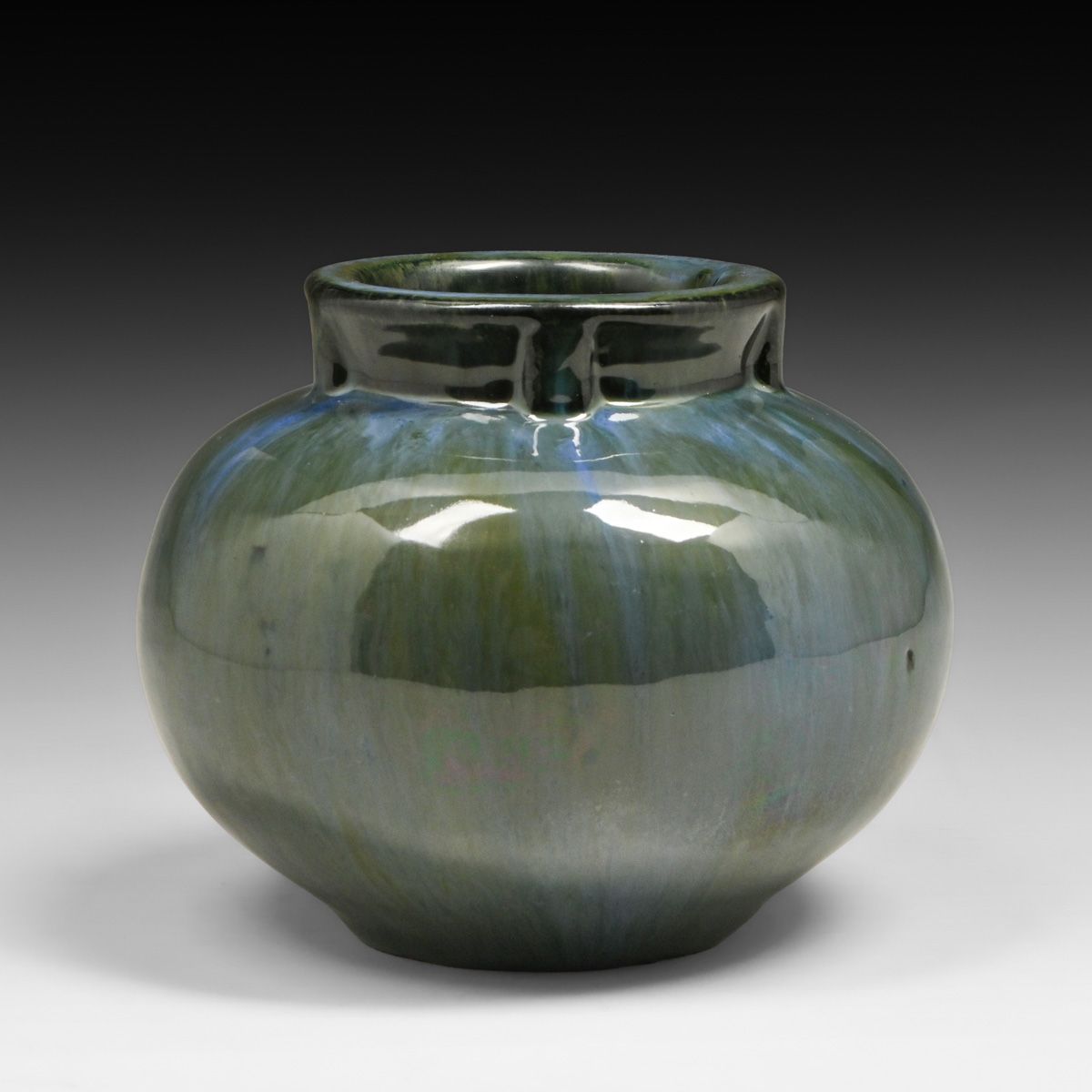 - Fulper Pottery Chinese Mirror Blue & Green Flambe Spherical Vase c1917-1920