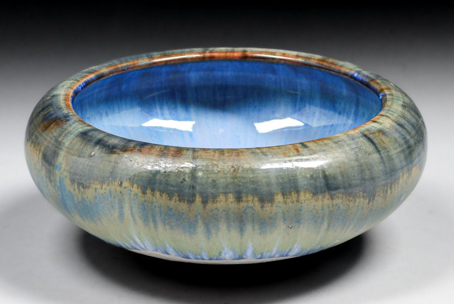 Fulper Pottery Cobalt Blue Flambe c1910. Signed. Perfect condition. 7.5"d x 3.25"h SOLD