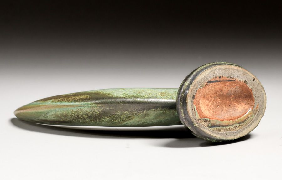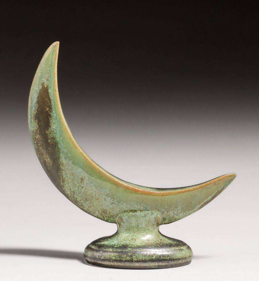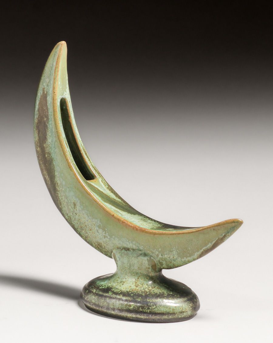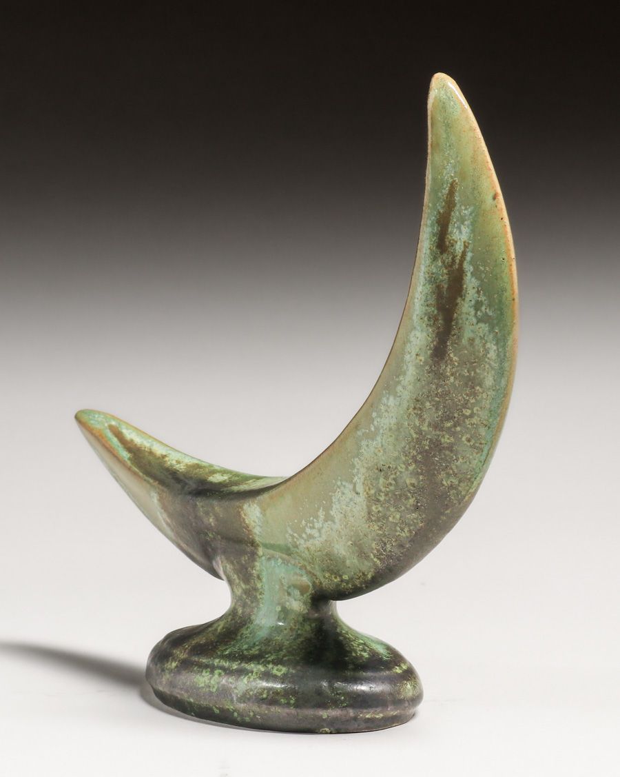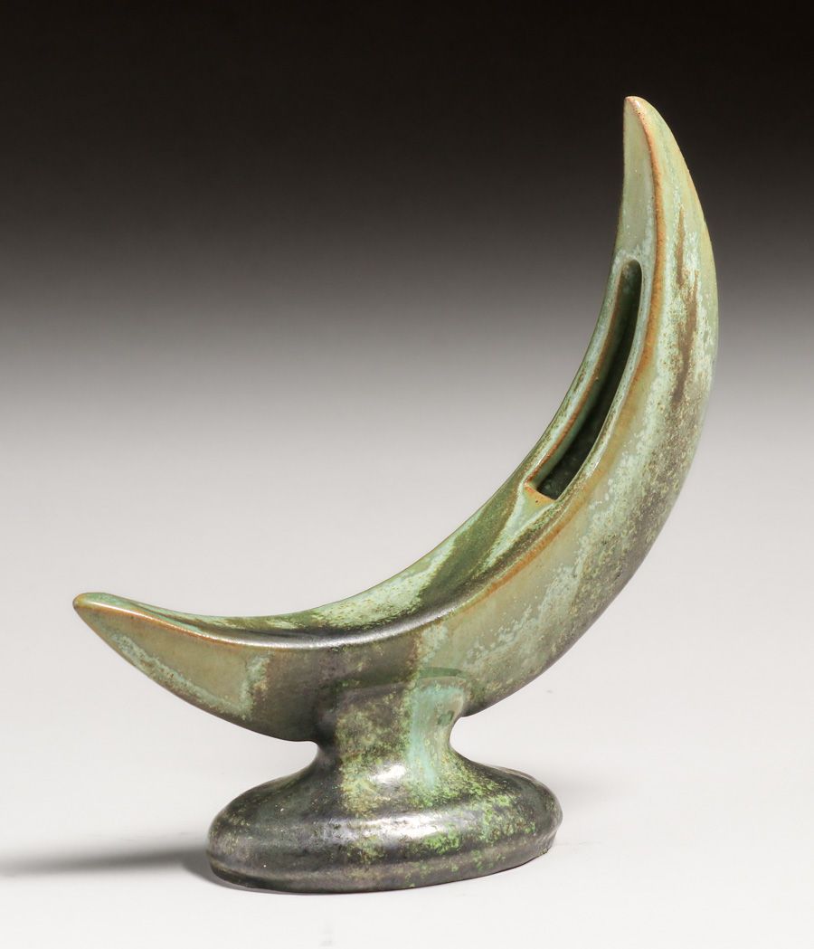 - Fulper Pottery Crescent Moon-Shaped Cucumber Green Vase c1915