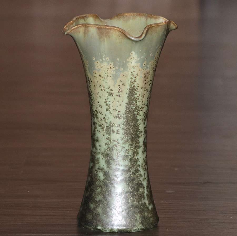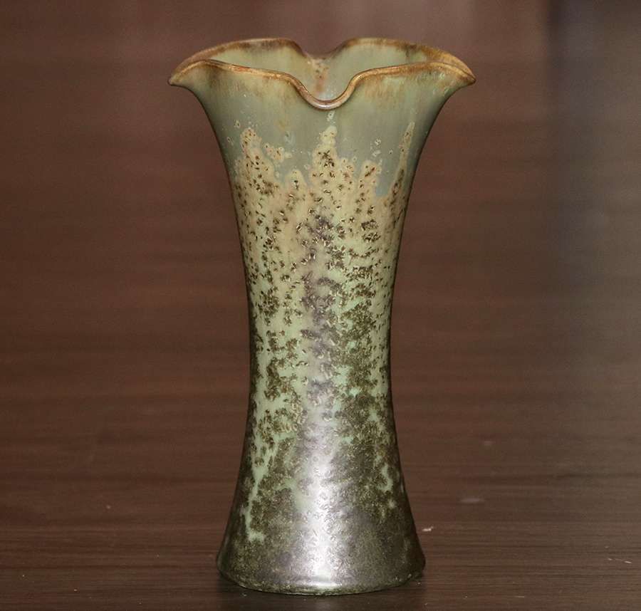 Fulper Pottery trumpet flared vase with exquisite leopardskin glaze. Signed. Perfect condition. 10"h x 6"d SOLD