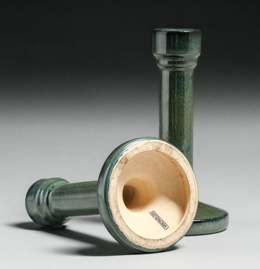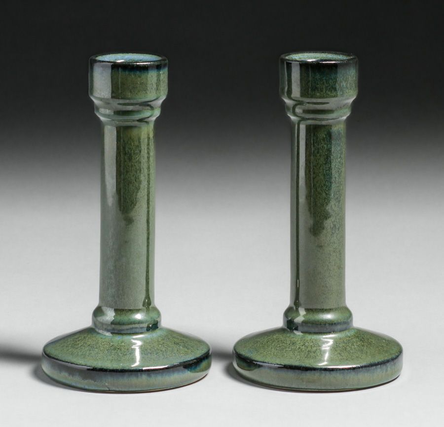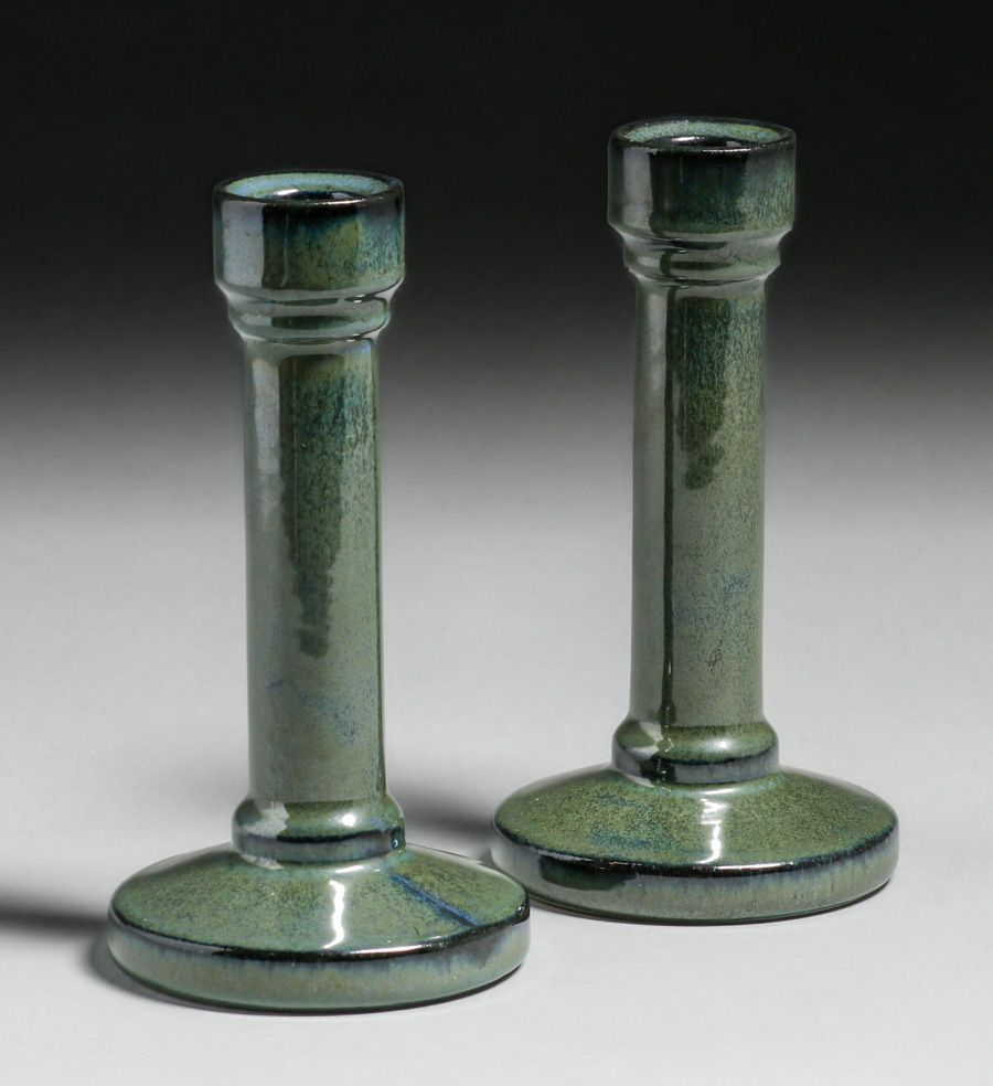 Fulper Pottery Flemington Candlesticks c1910. Signed with rare Flemington mark. Perfect condition. 7.5"h x 4"d SOLD