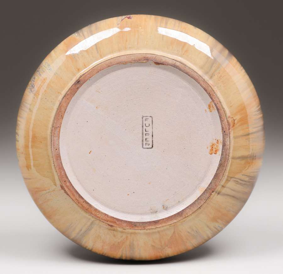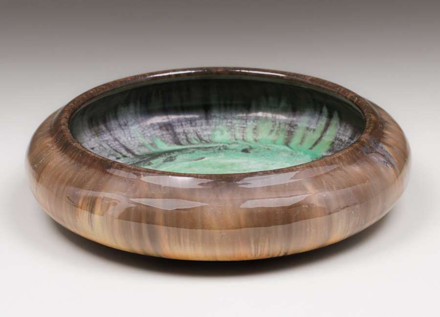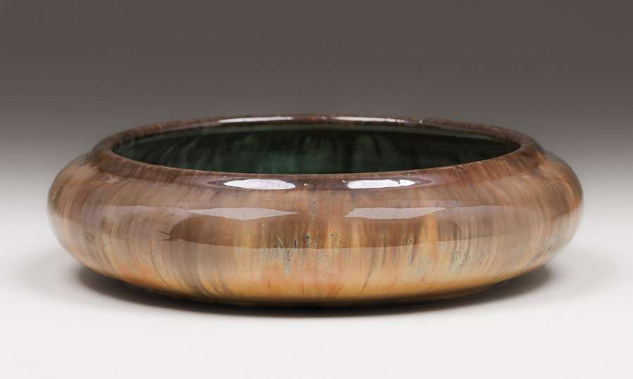 Fulper Pottery Fruit Bowl c1910s. Signed. A few small glaze bubbles and light calcium within interior. 10.75"d x 2.75"h $450