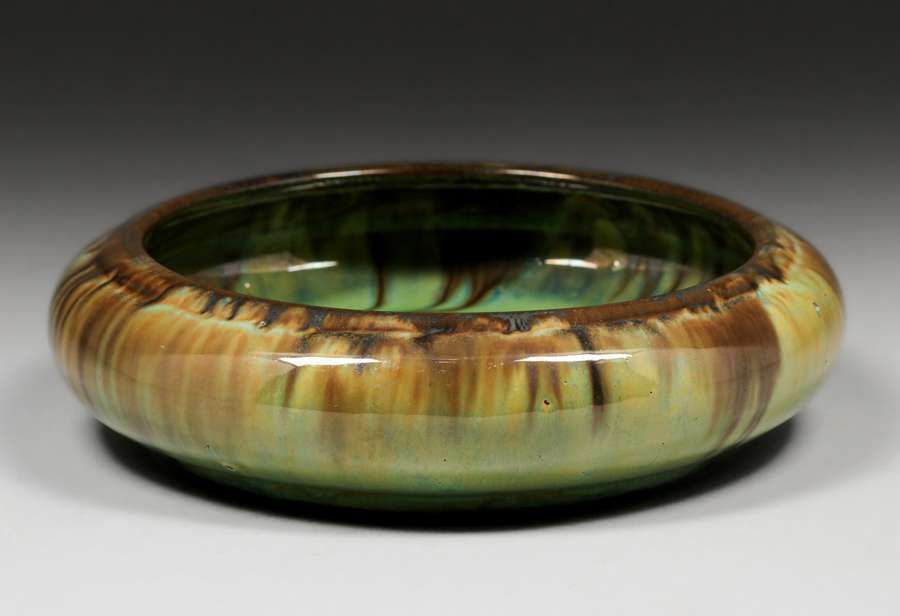 - Fulper Pottery Green & Black Flambe Bowl c1910s