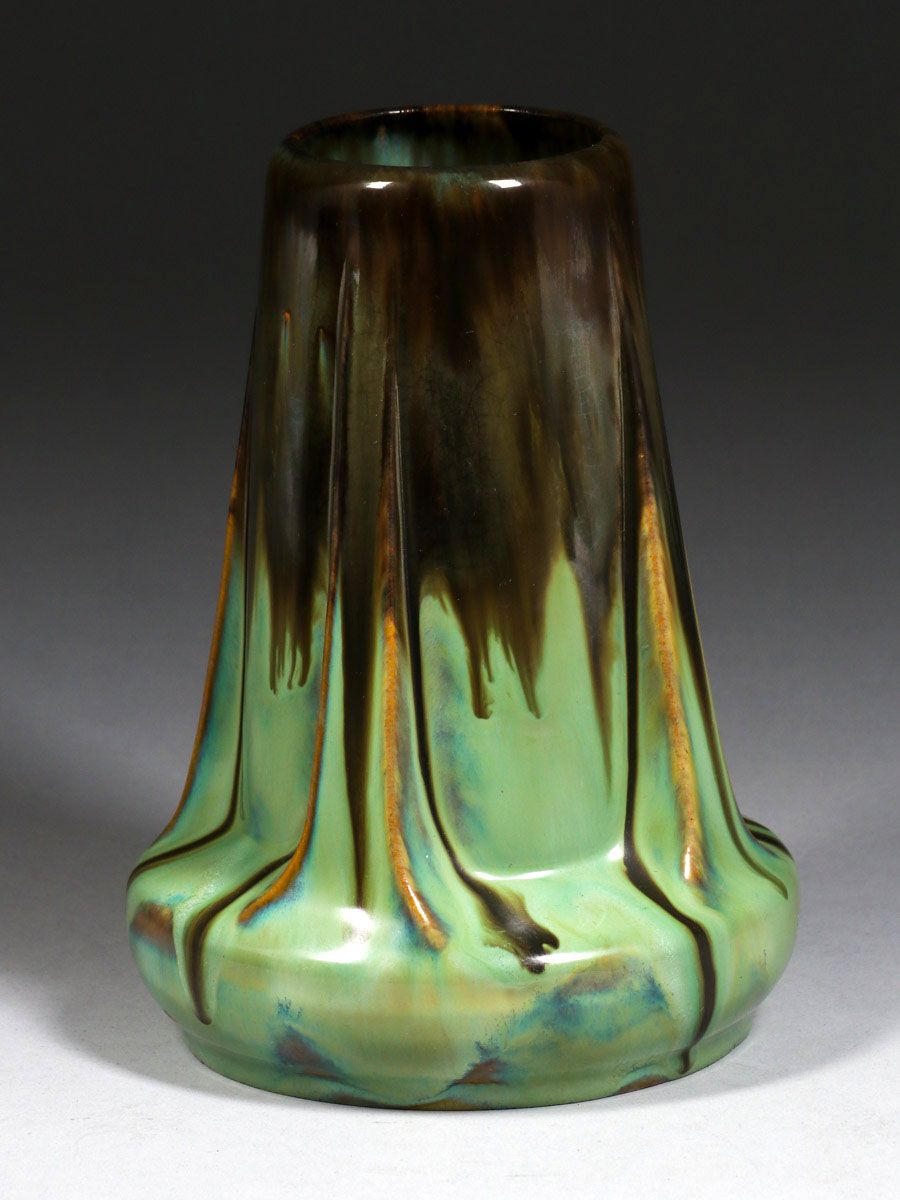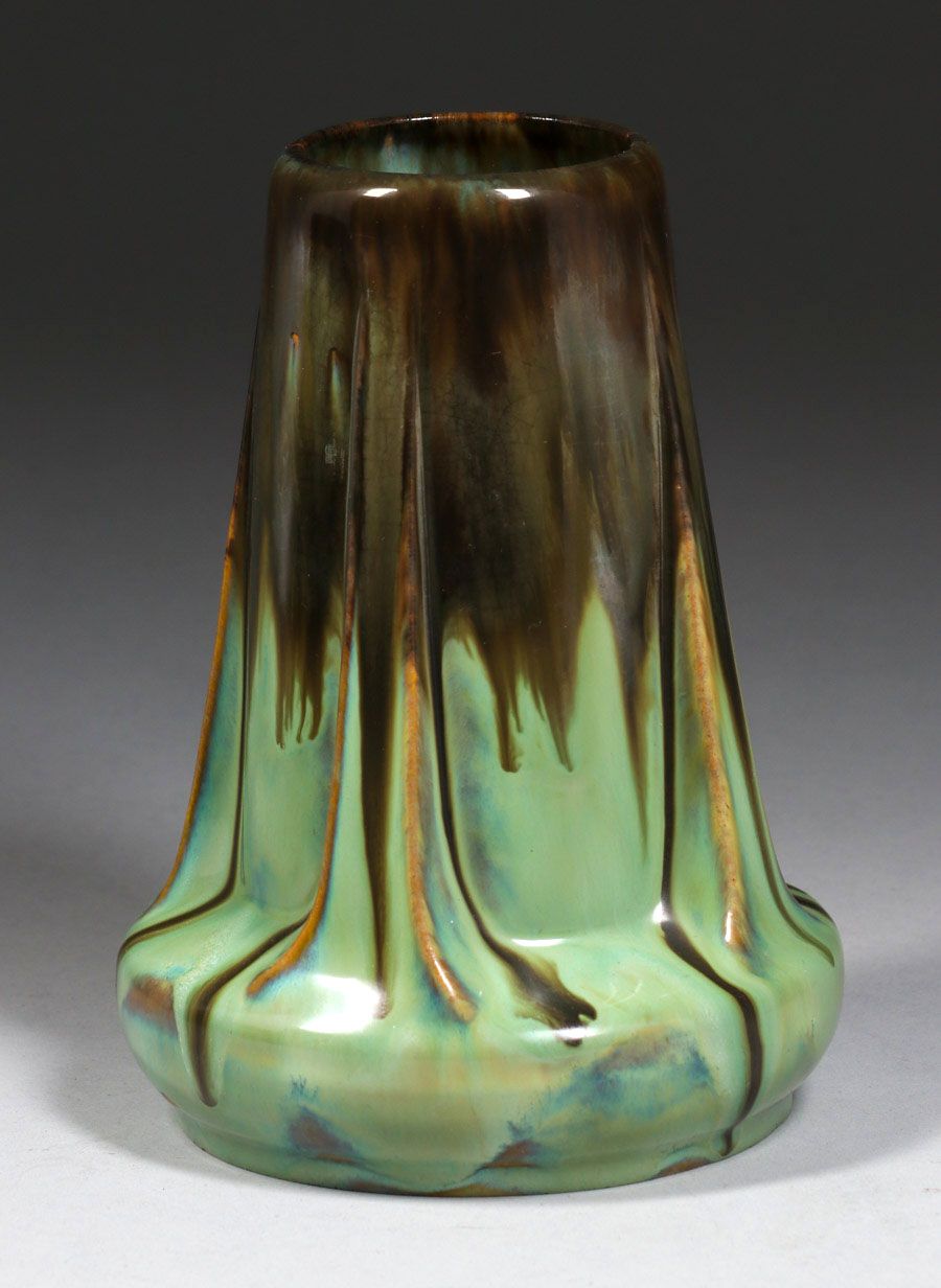 - Fulper Pottery Green Flambe Buttress Vase c1910s