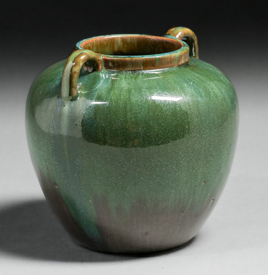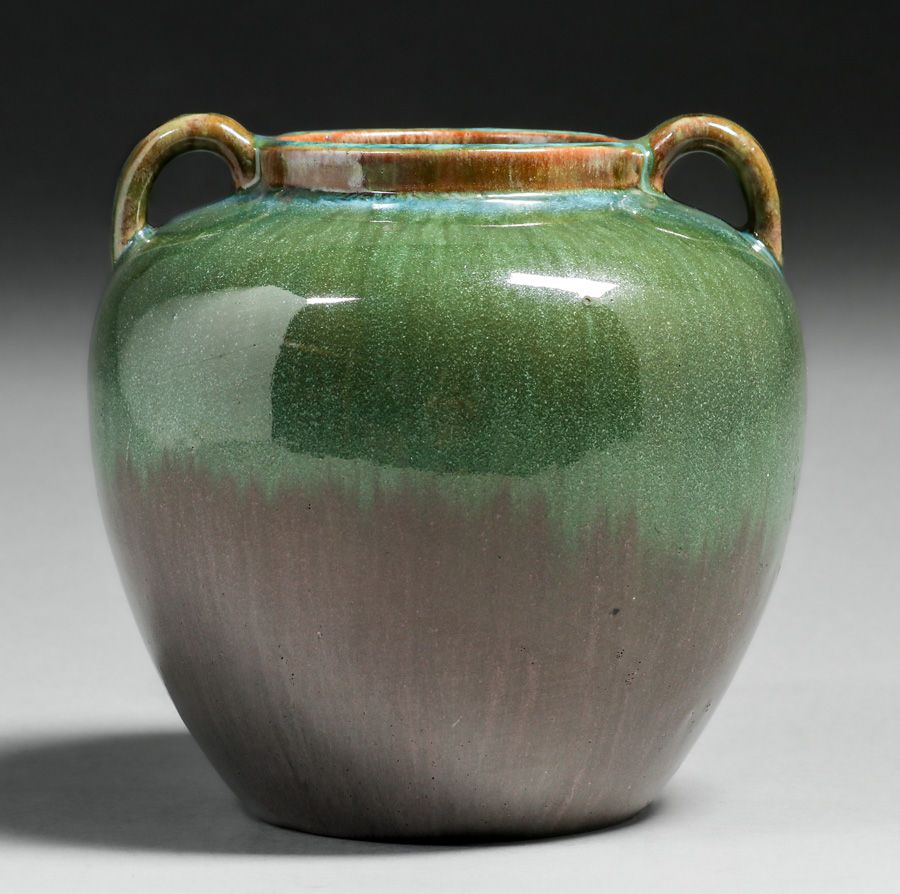 - Fulper Pottery Green & Purple Two-Handled Vase c1910