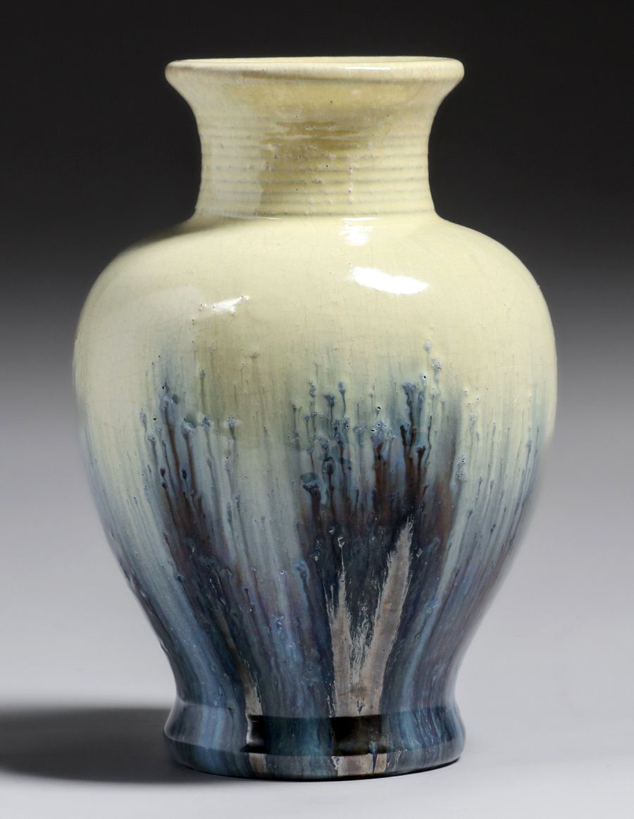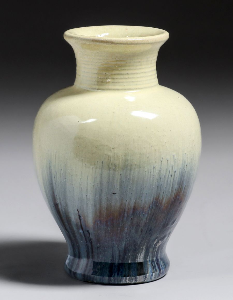 - Fulper Pottery Ivory & Chinese Blue Flambe Vase c1910