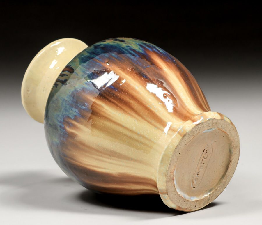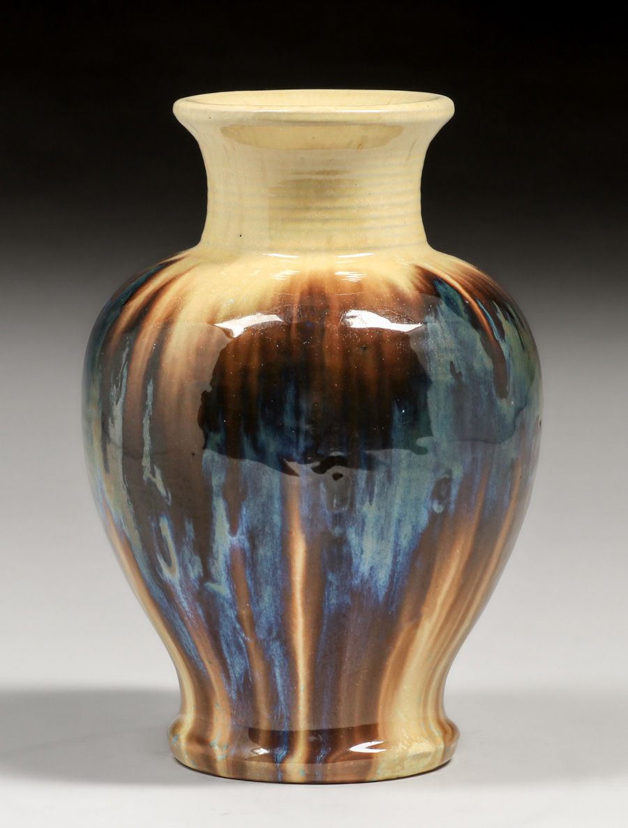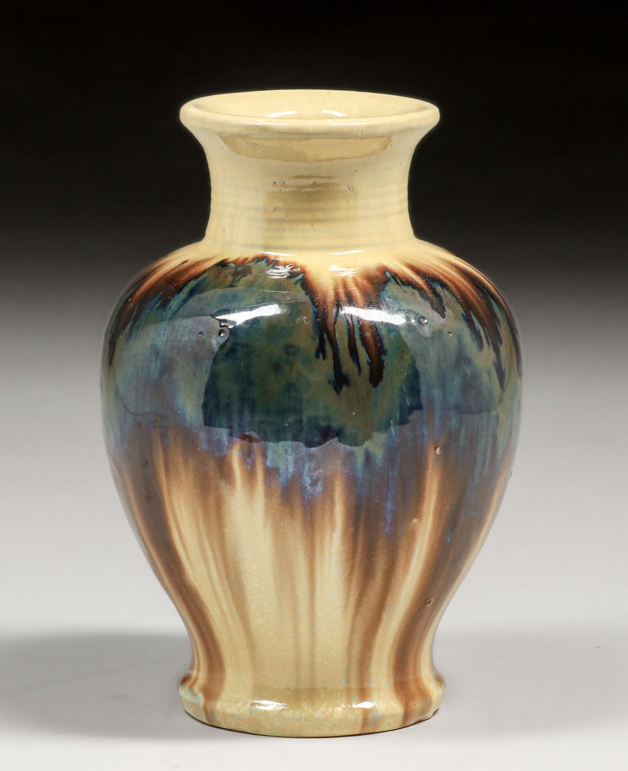 - Fulper Pottery Ivory & Mirror Black Flambe Vase c1910s