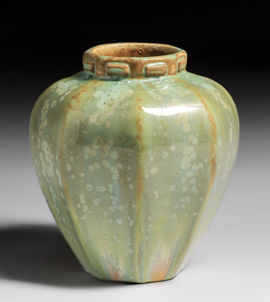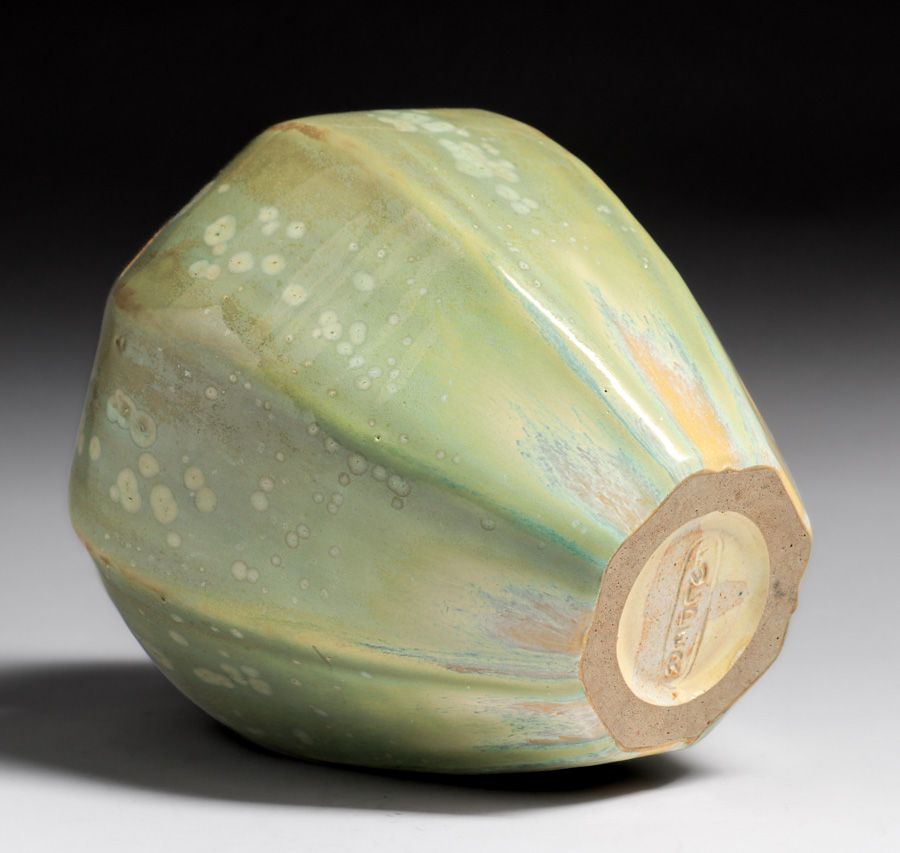 Fulper Pottery Leaopardskin Eight-Sided Vase c1910s. Signed. Perfect condition. 7.5"h x 6.25"d $950