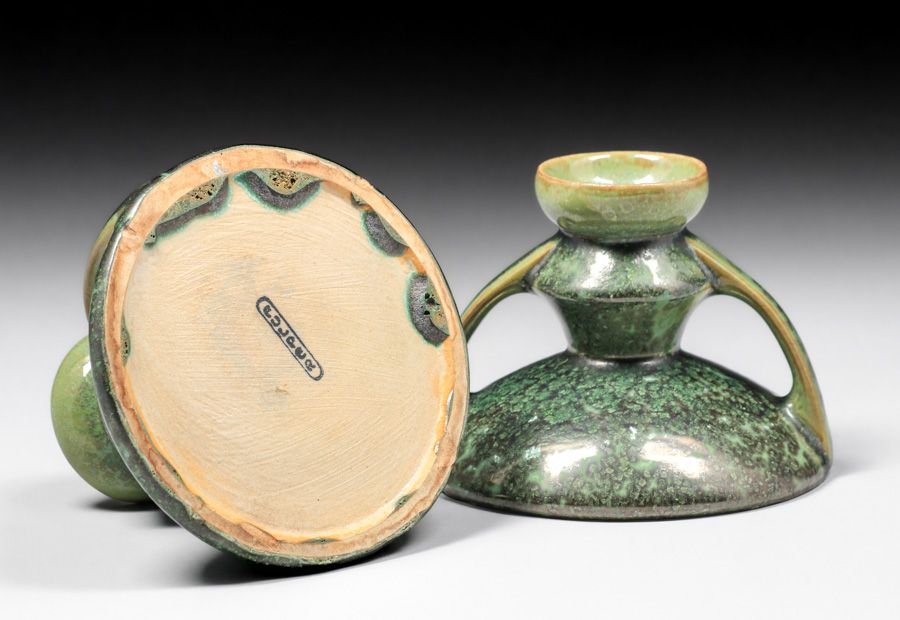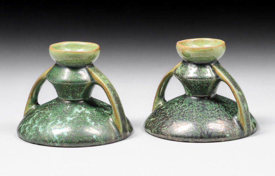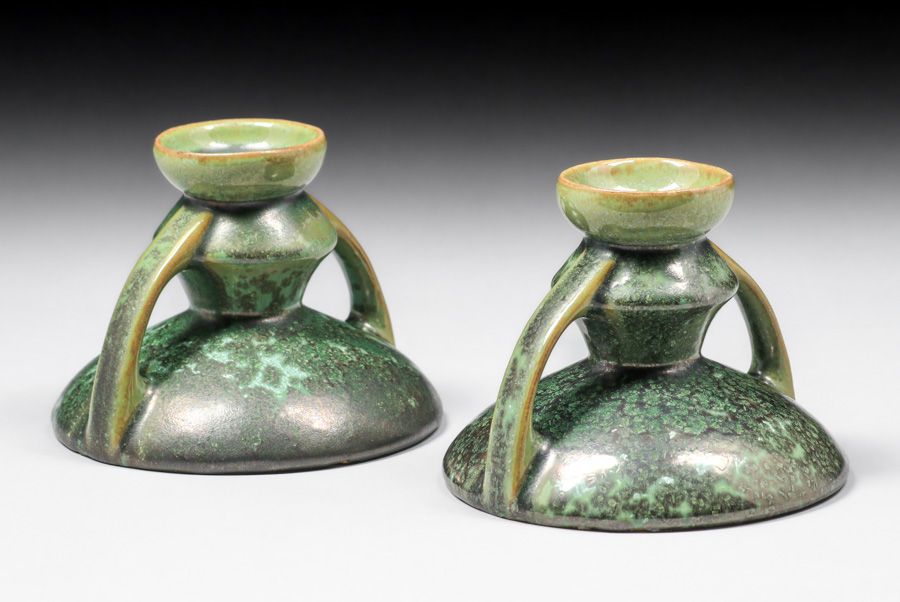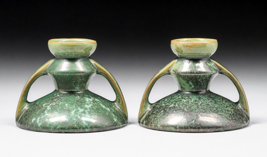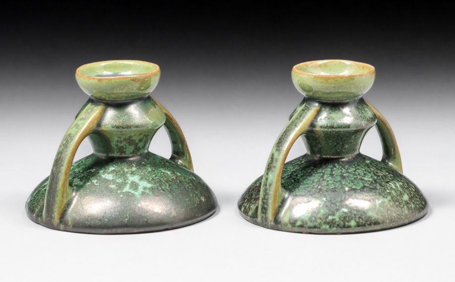 - Fulper Pottery Leopardskin Candlesticks c1917-1920