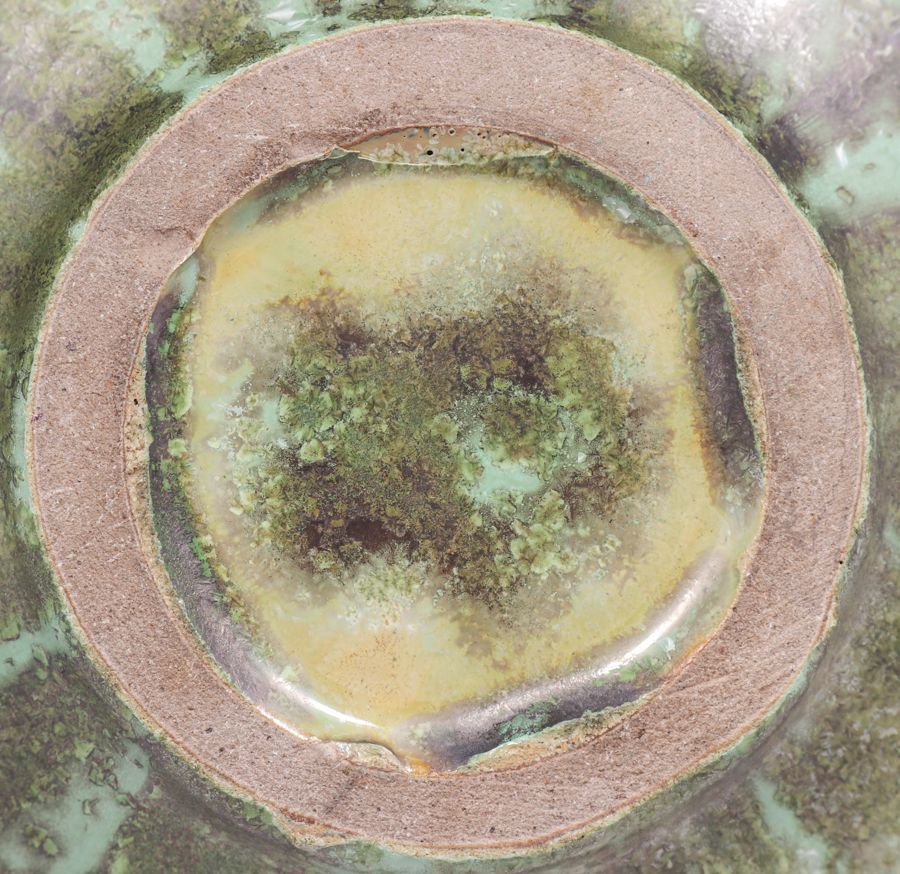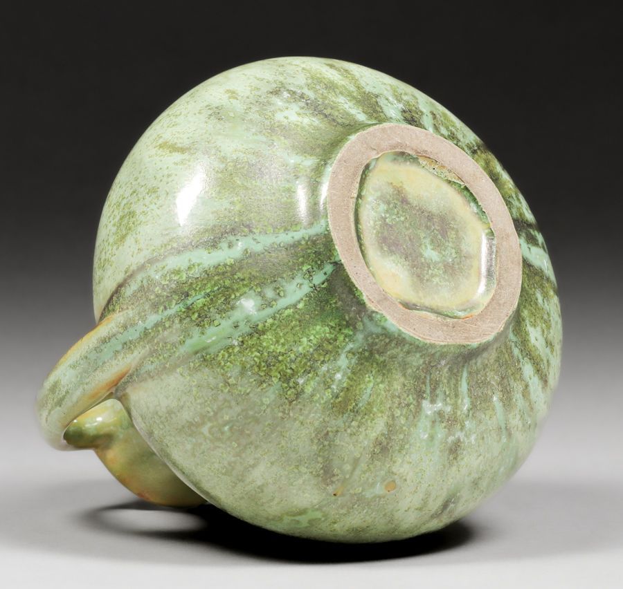 Fulper Pottery Leopardskin Two-Handled Vase c1910s. Glazed over signature. Perfect condition. 6.5"d x 6"h SOLD