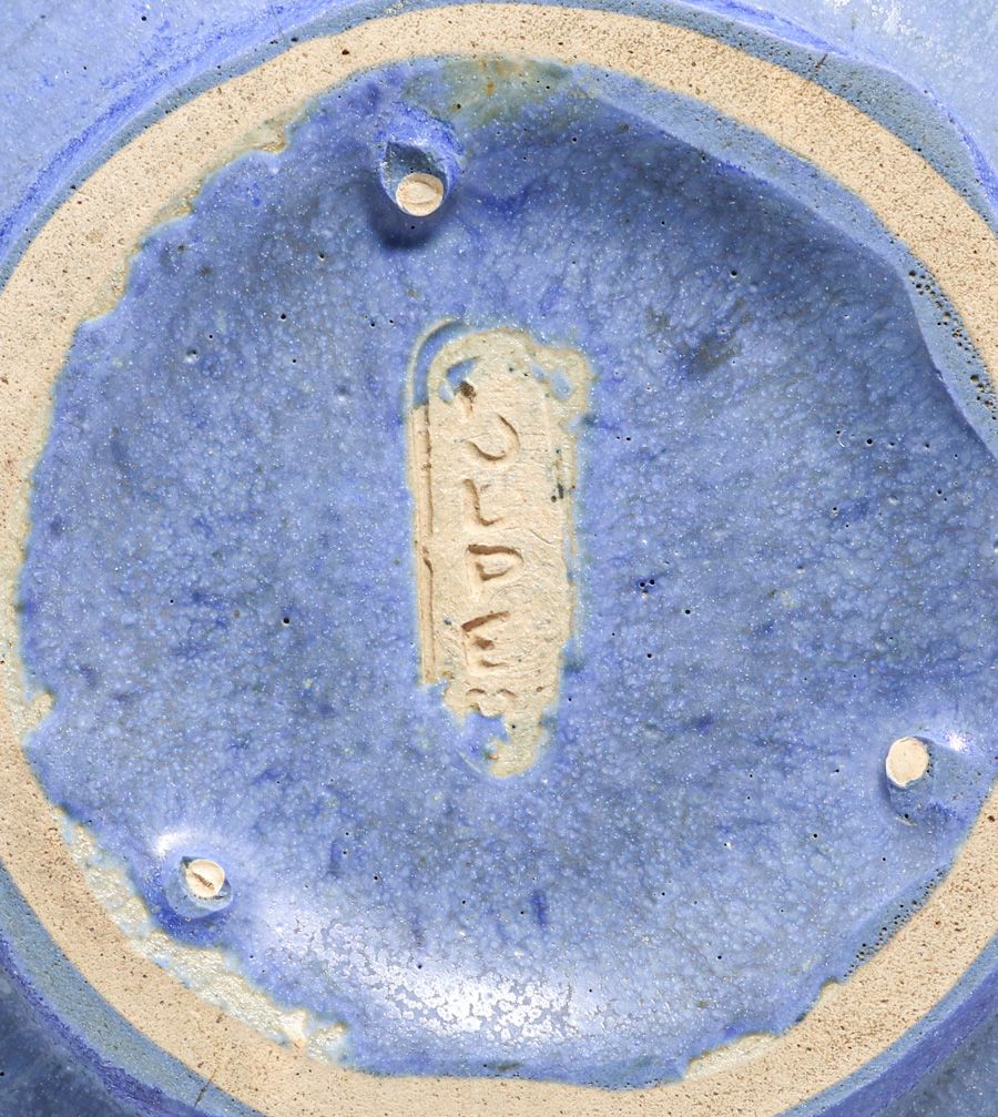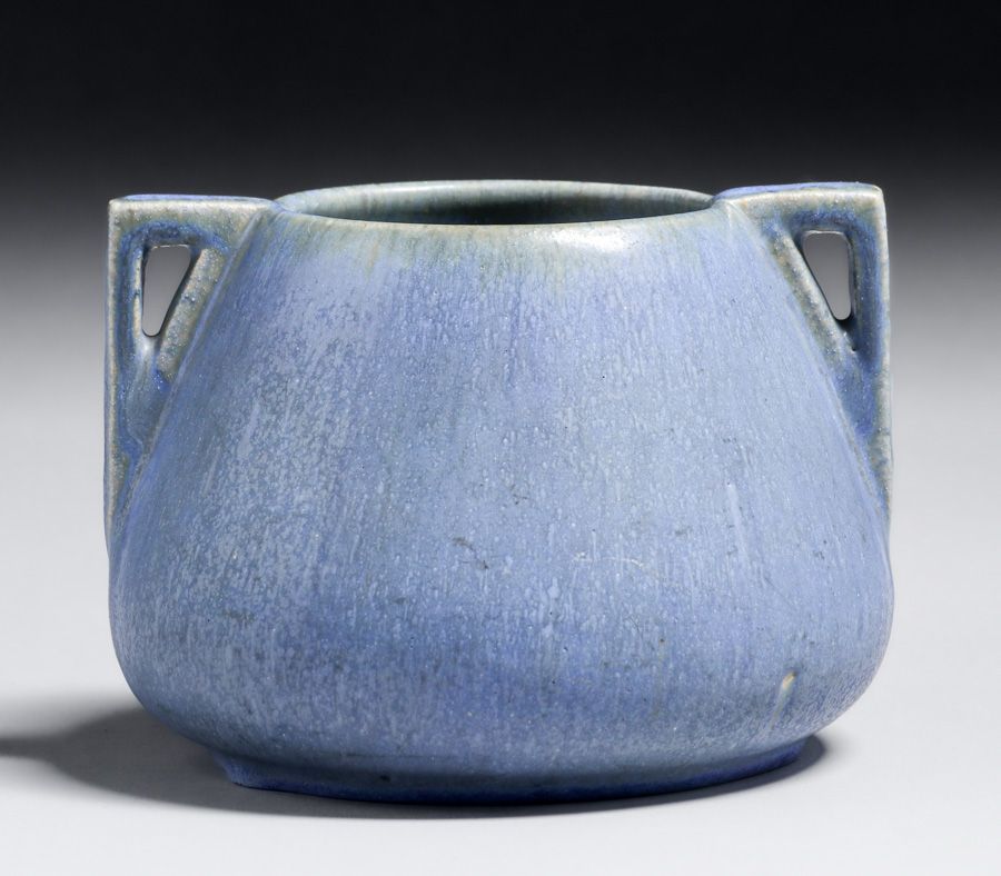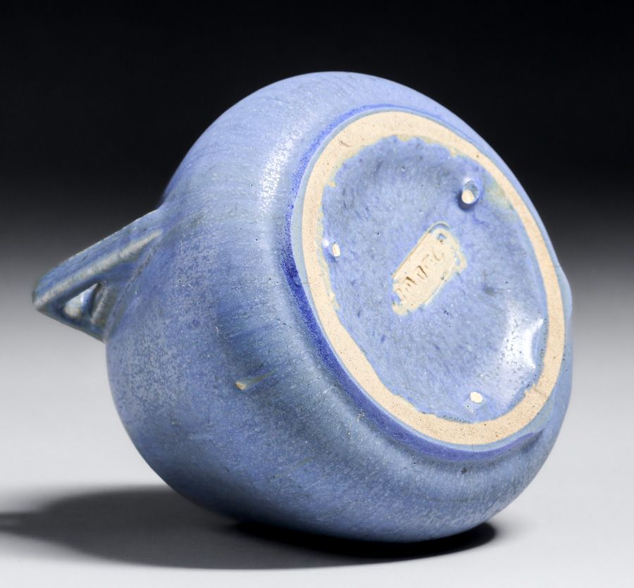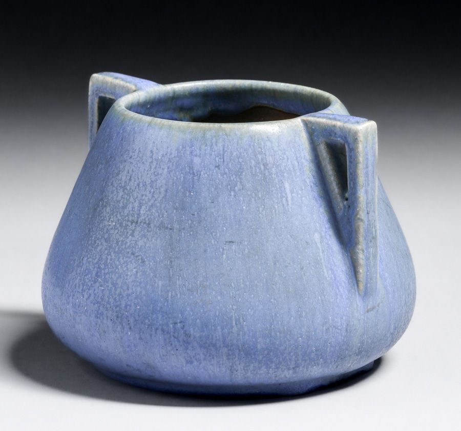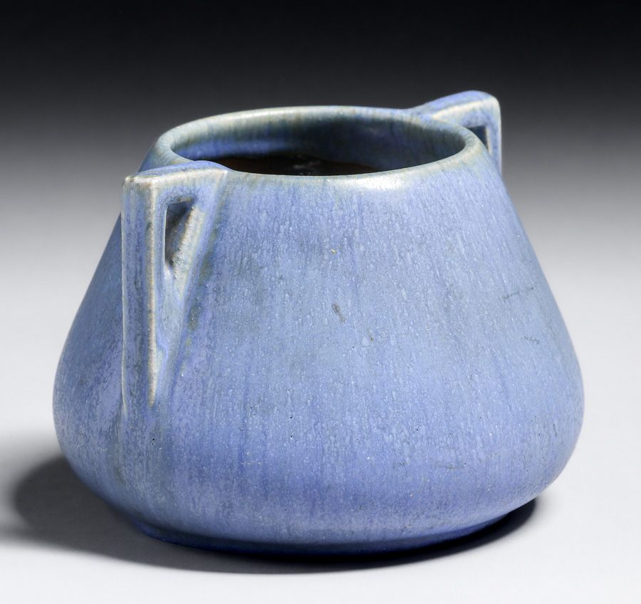 Fulper Pottery Matte Blue Two-Handled Vase c1910. Signed. Perfect condition. 5.75″d x 4.25″h SOLD