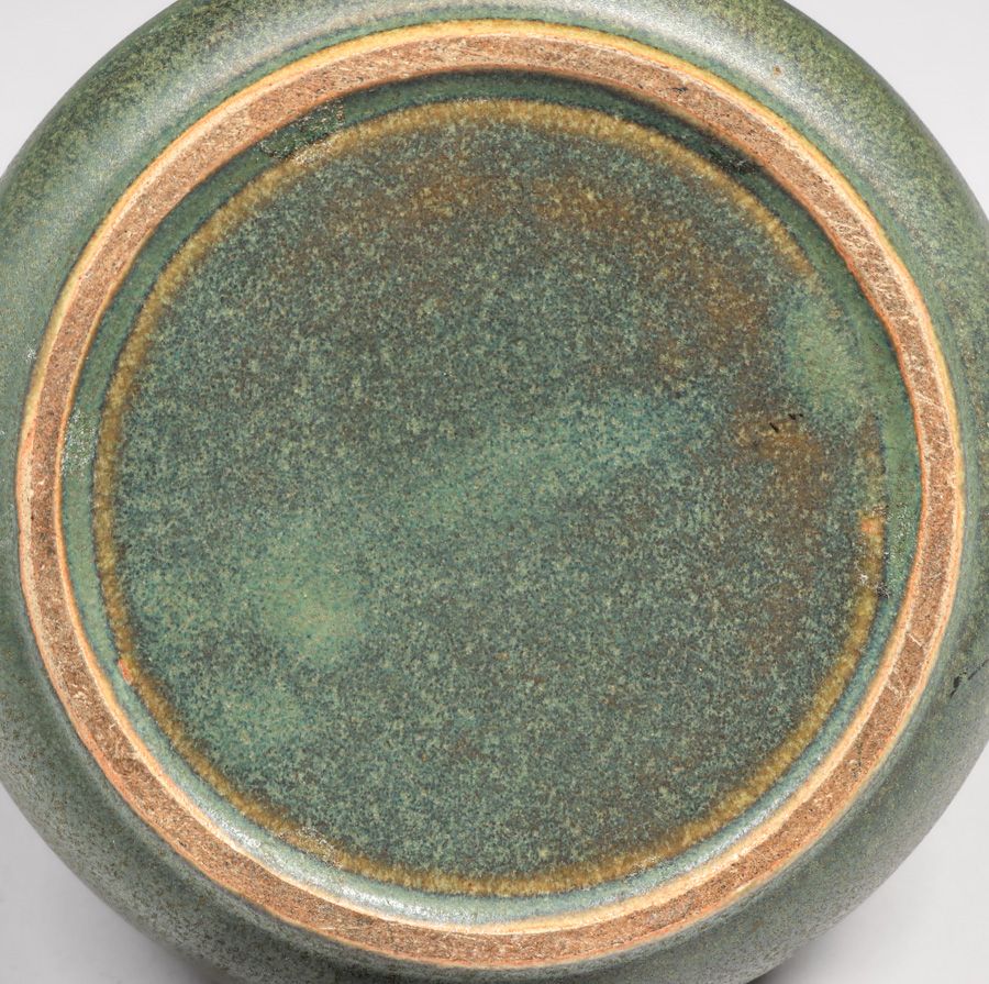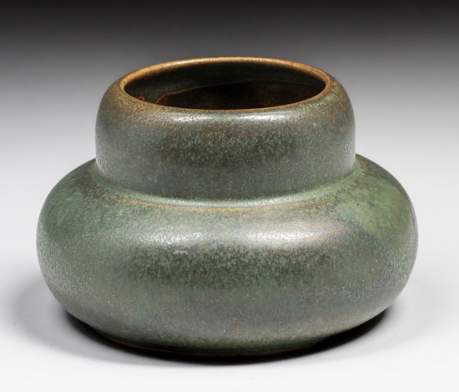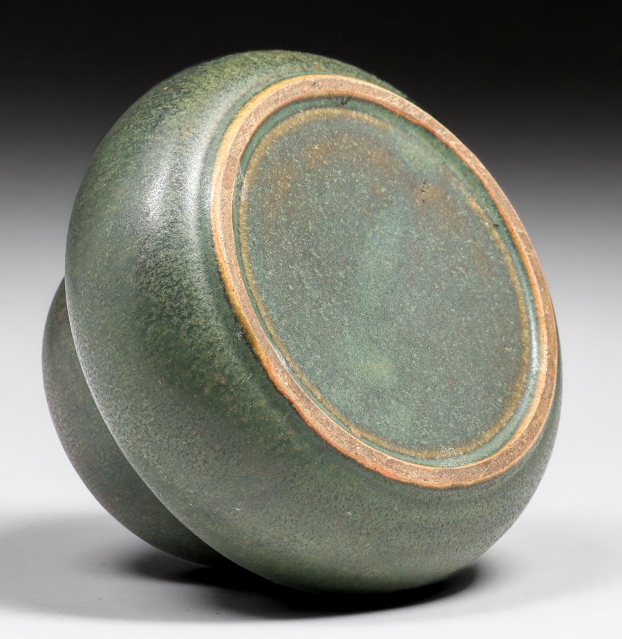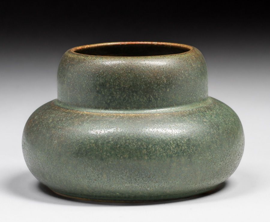 Fulper Pottery Matte Green Double Gourd Vase c1910s. Glazed over signature. Perfect condition. 6"d x 4"h SOLD