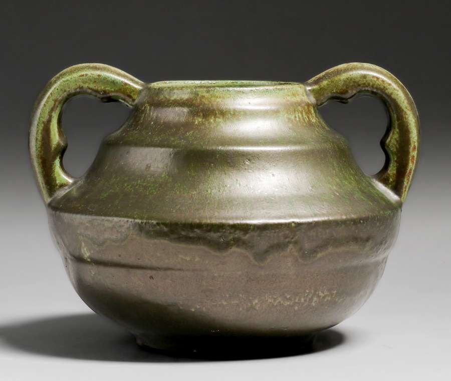 - Fulper Pottery Matte Green Two-Handled Vase c1920