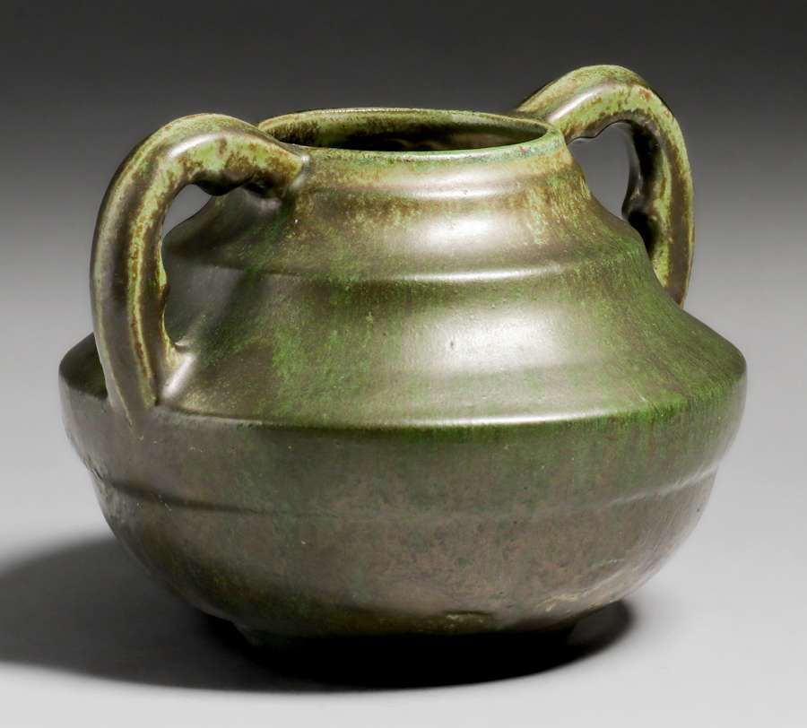 Fulper Pottery Matte Green Two-Handled Vase c1920. Signed. Perfect condition. 7"h x 10"w SOLD