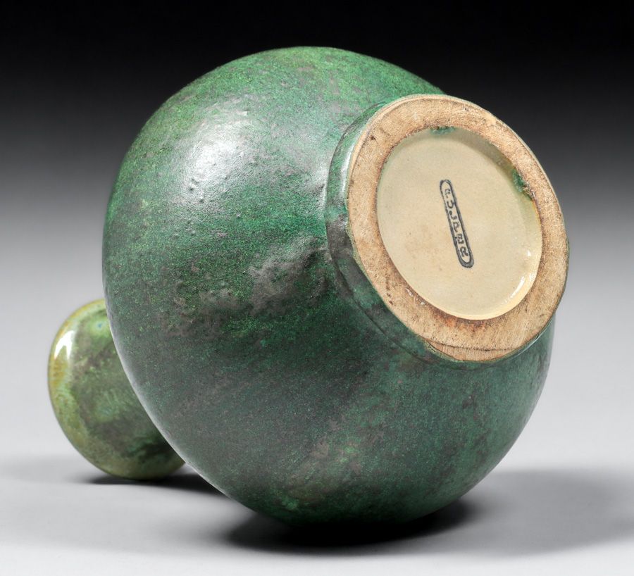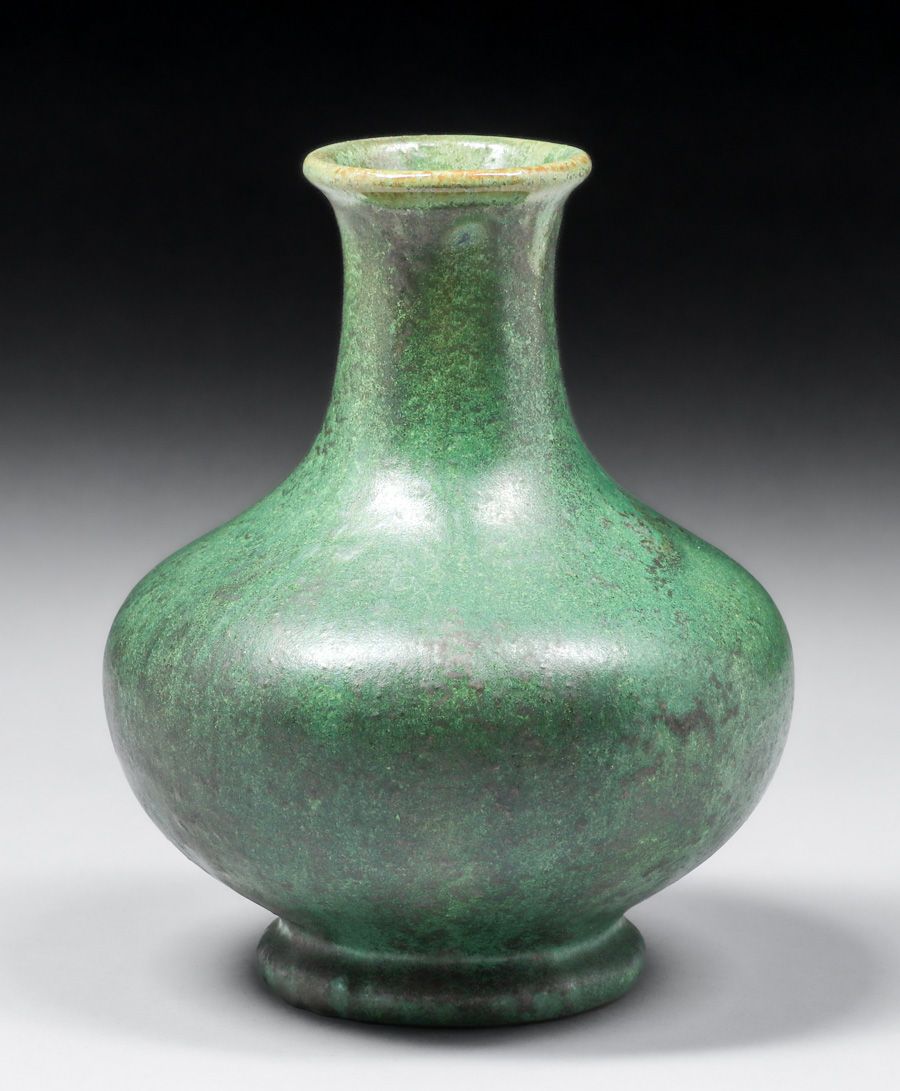 Fulper Pottery Matte Green Vase c1917-1920. Incredible thick matte green glaze. Signed. Perfect condition. 7 3/8"h x 5.5"d SOLD