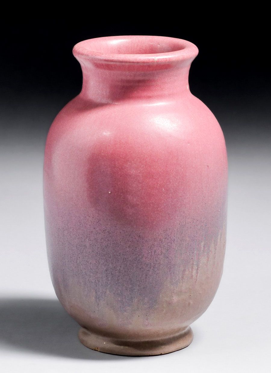 - Fulper Pottery Matte Pink & Elephants Breath Matte Flambe Vase c1910s