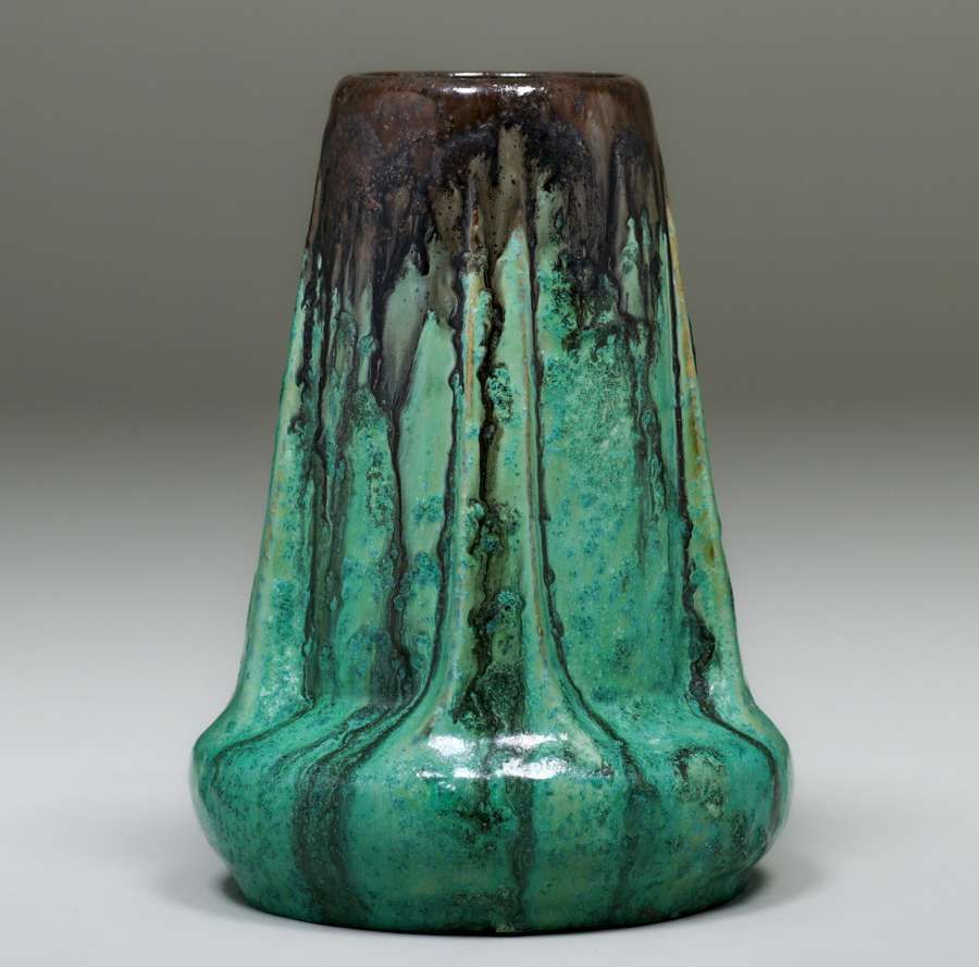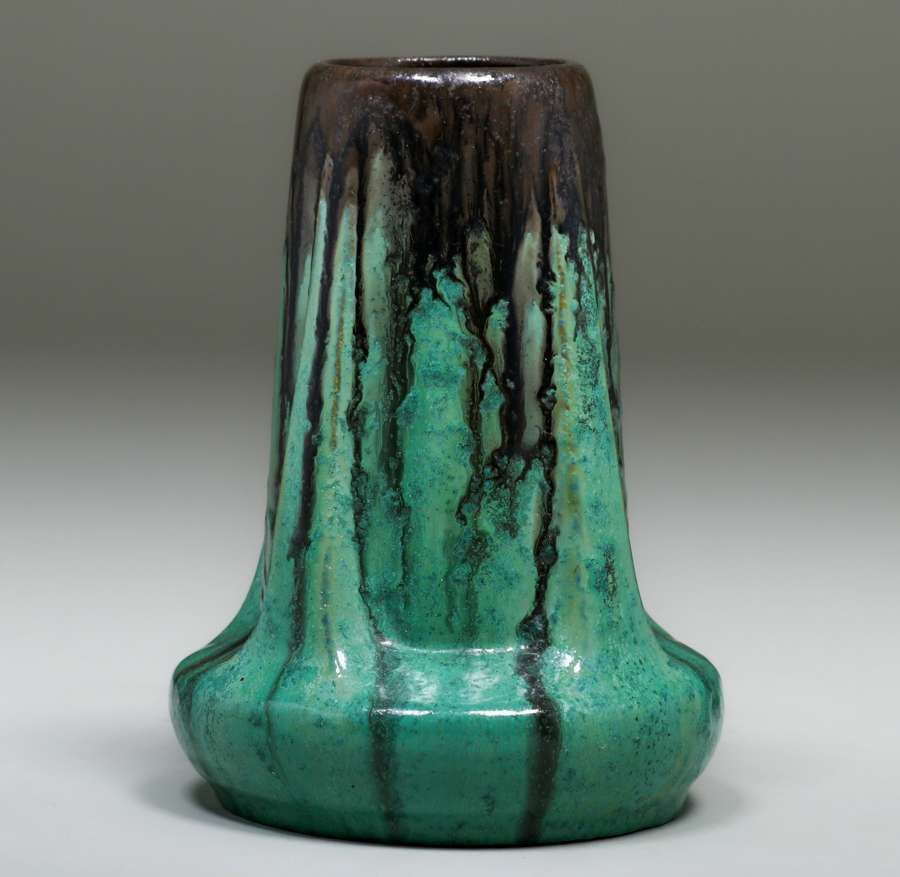 - Fulper Pottery Mirror Black Drip Glazed Buttress Vase c1910