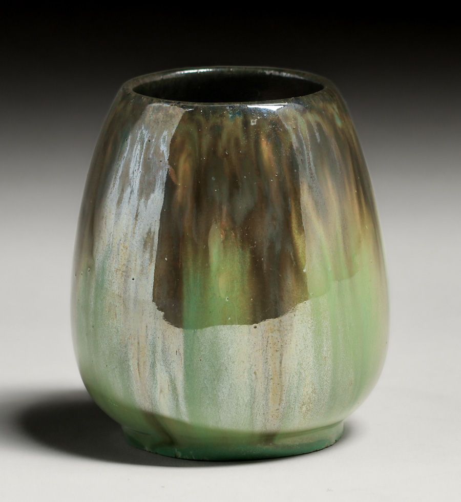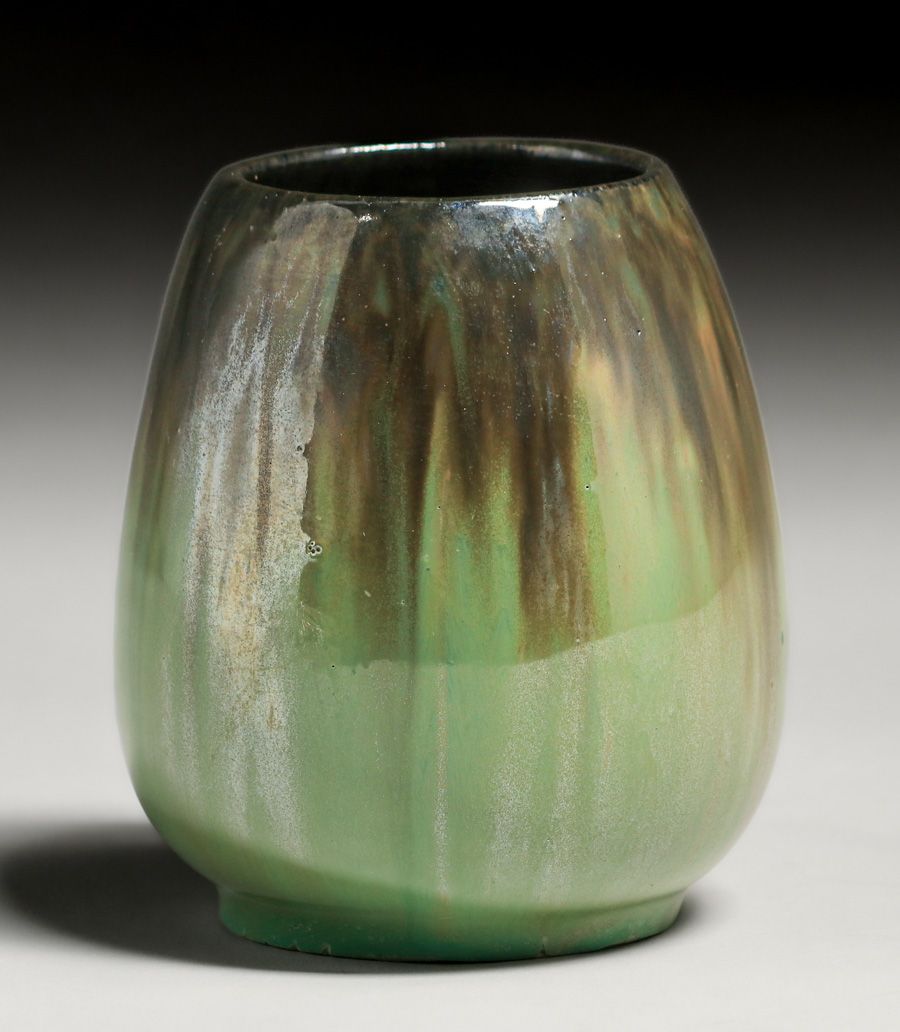 - Fulper Pottery Mirror Black & Green Flambe Vase c1910s