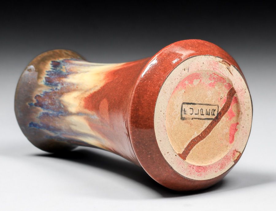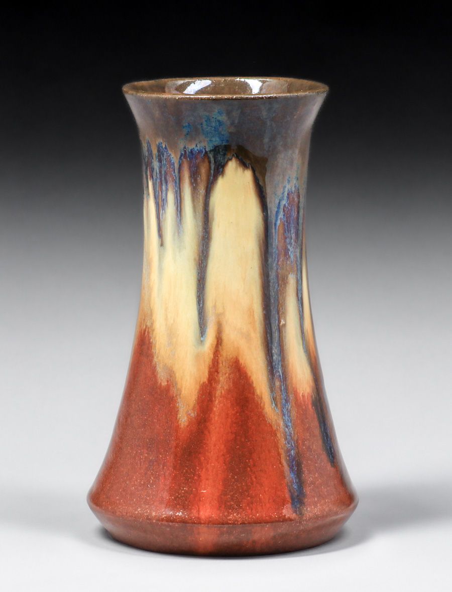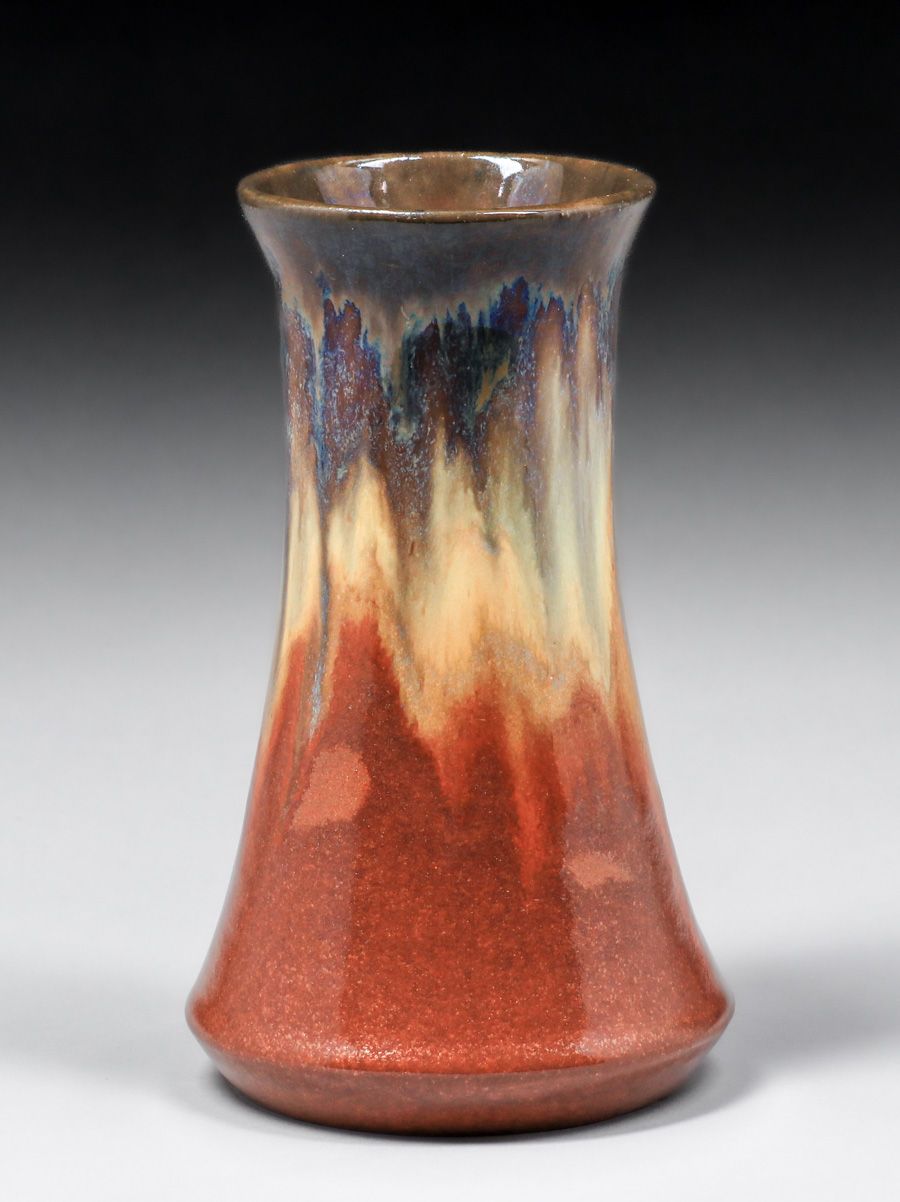 - Fulper Pottery Mirror Black & Mahogany Flambe Drip Vase c1910s