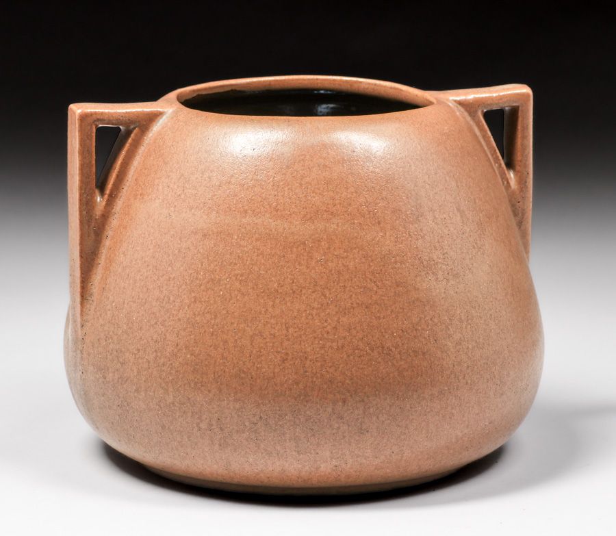 Fulper Pottery Mission Matte Two-Handled Vase c1910s. Signed. Perfect condition. 9 3/8"w x 7.25"h $1200
